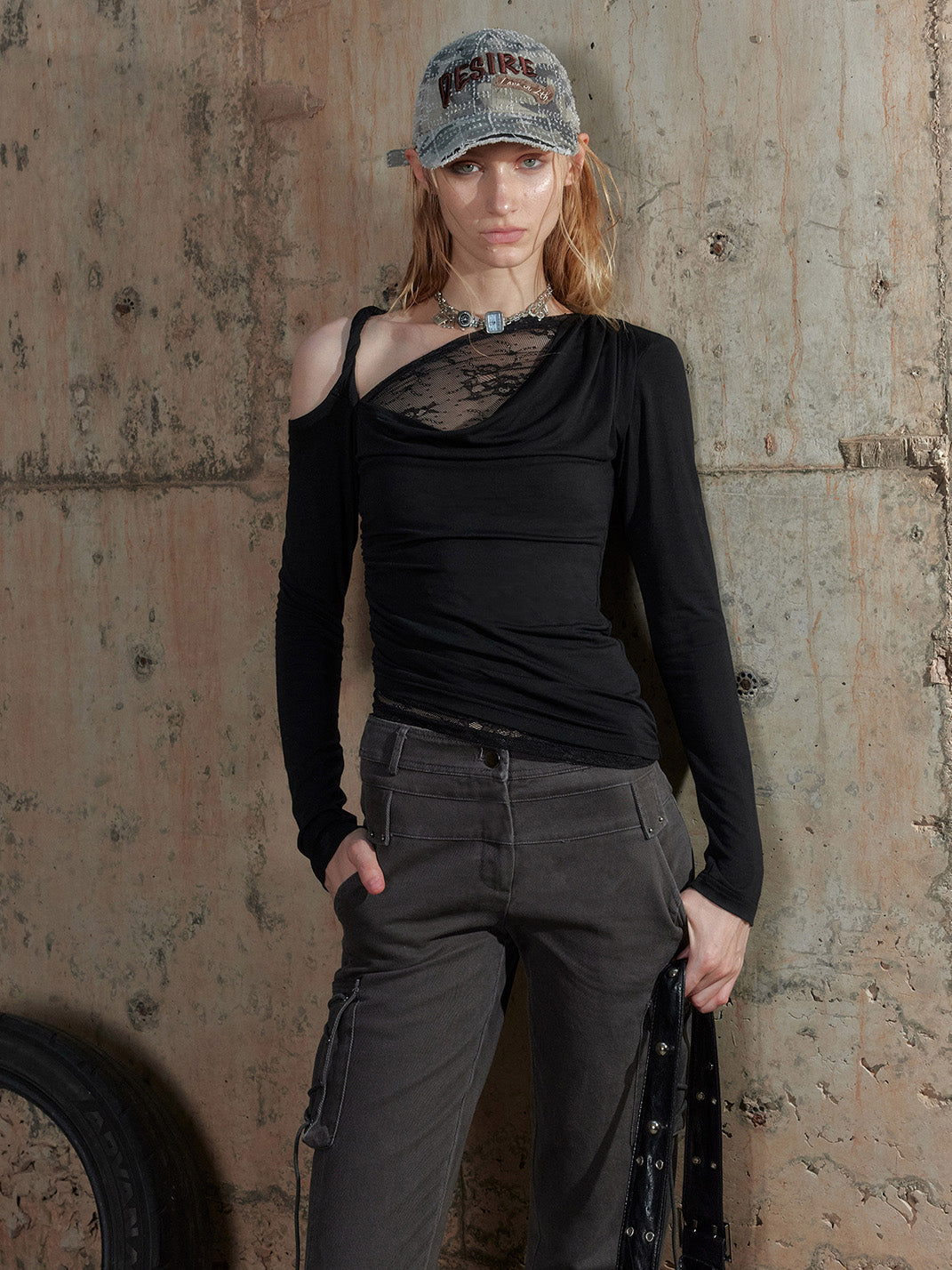 2th Desire | Off-Shoulder Lace Sleeve Top Skip to content