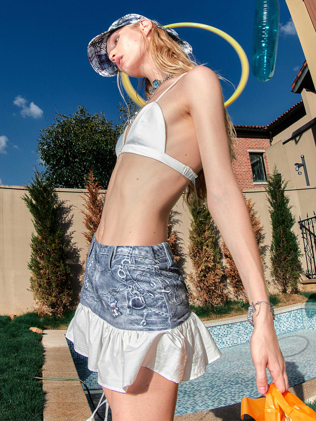 2th Desire | Faded Leather Hardware Printed Denim Patchwork Mini Skirt Skip to content