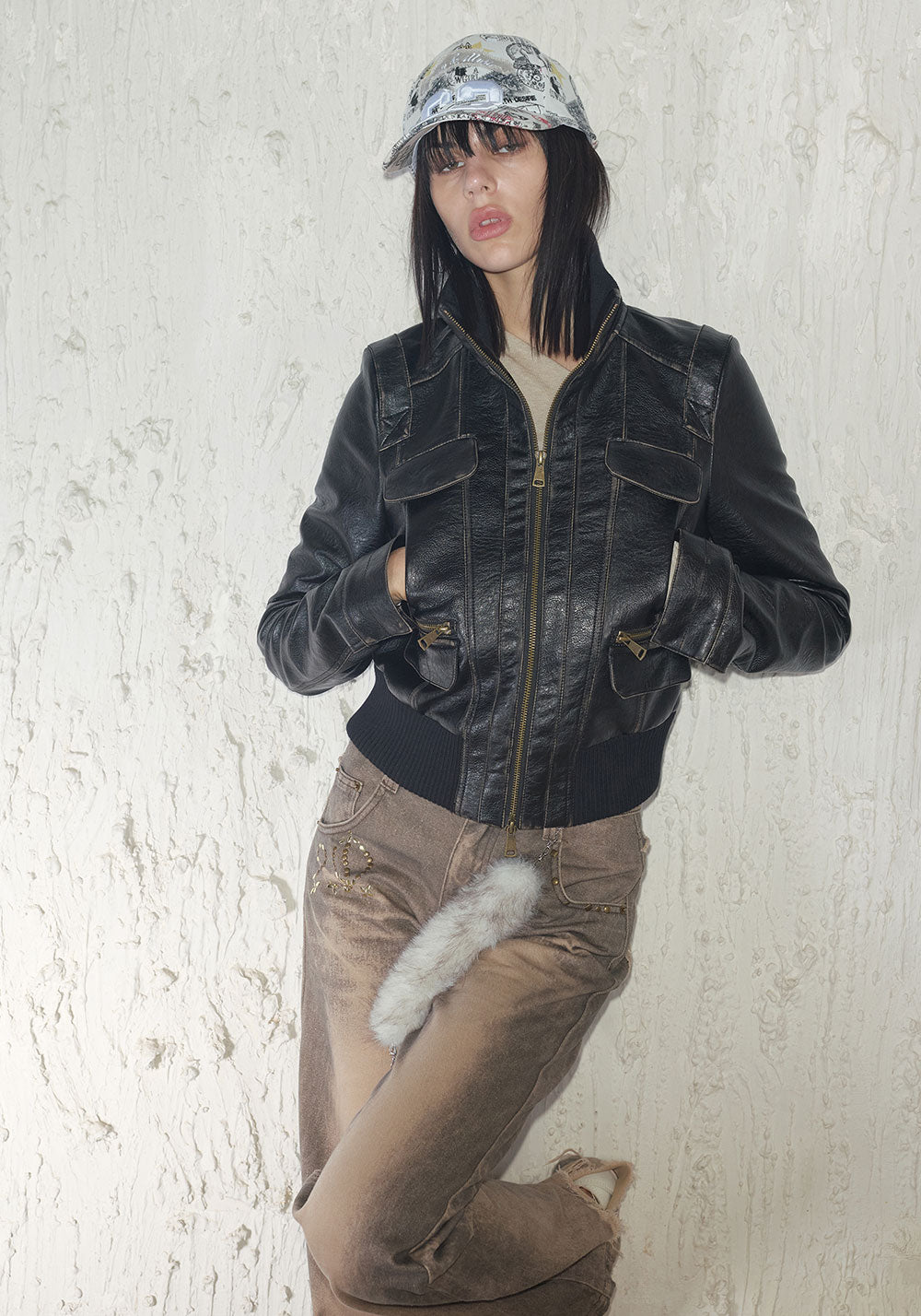 2th Desire | Vintage Washed Zip-Up Leather Jacket Skip to content