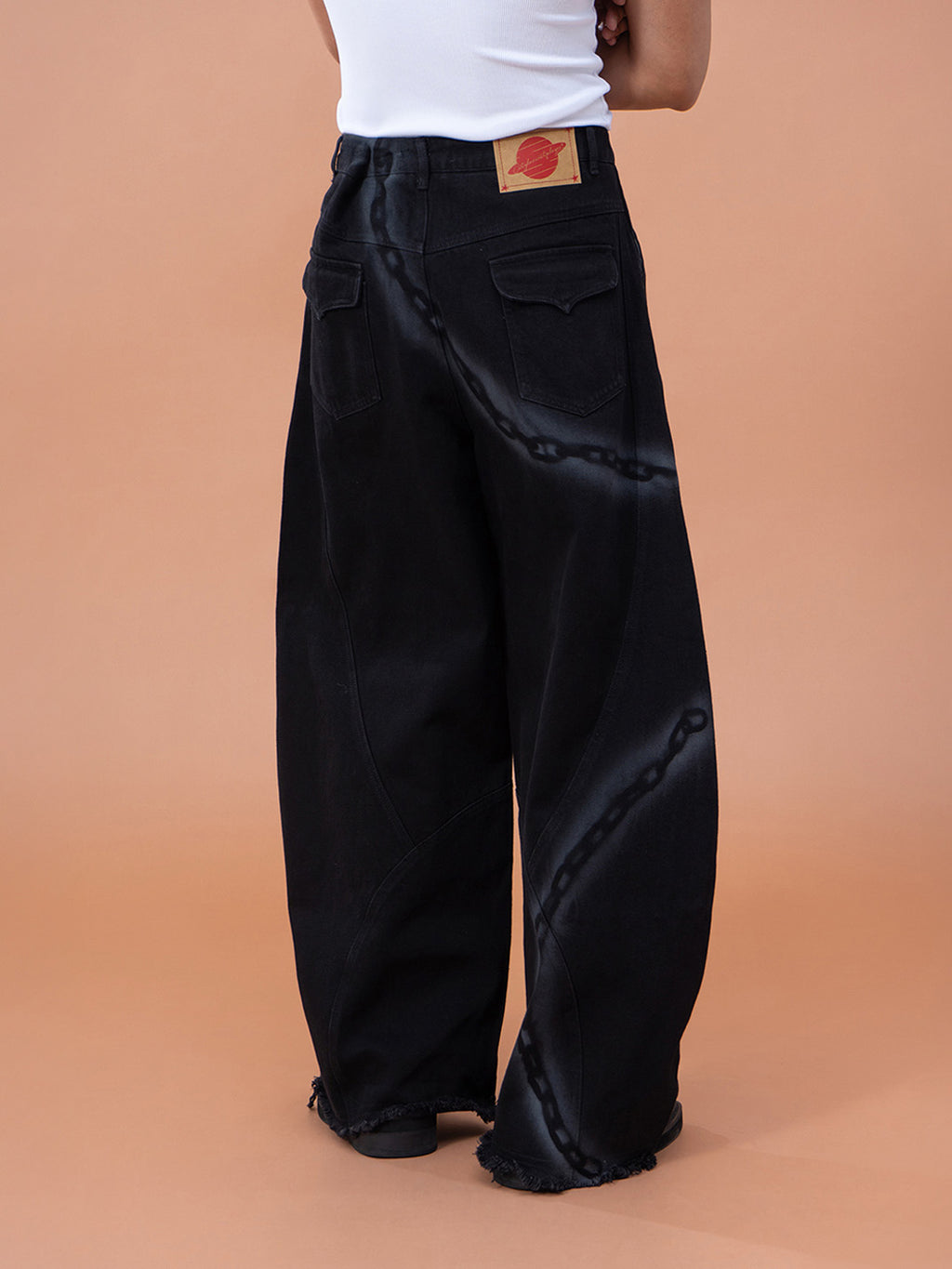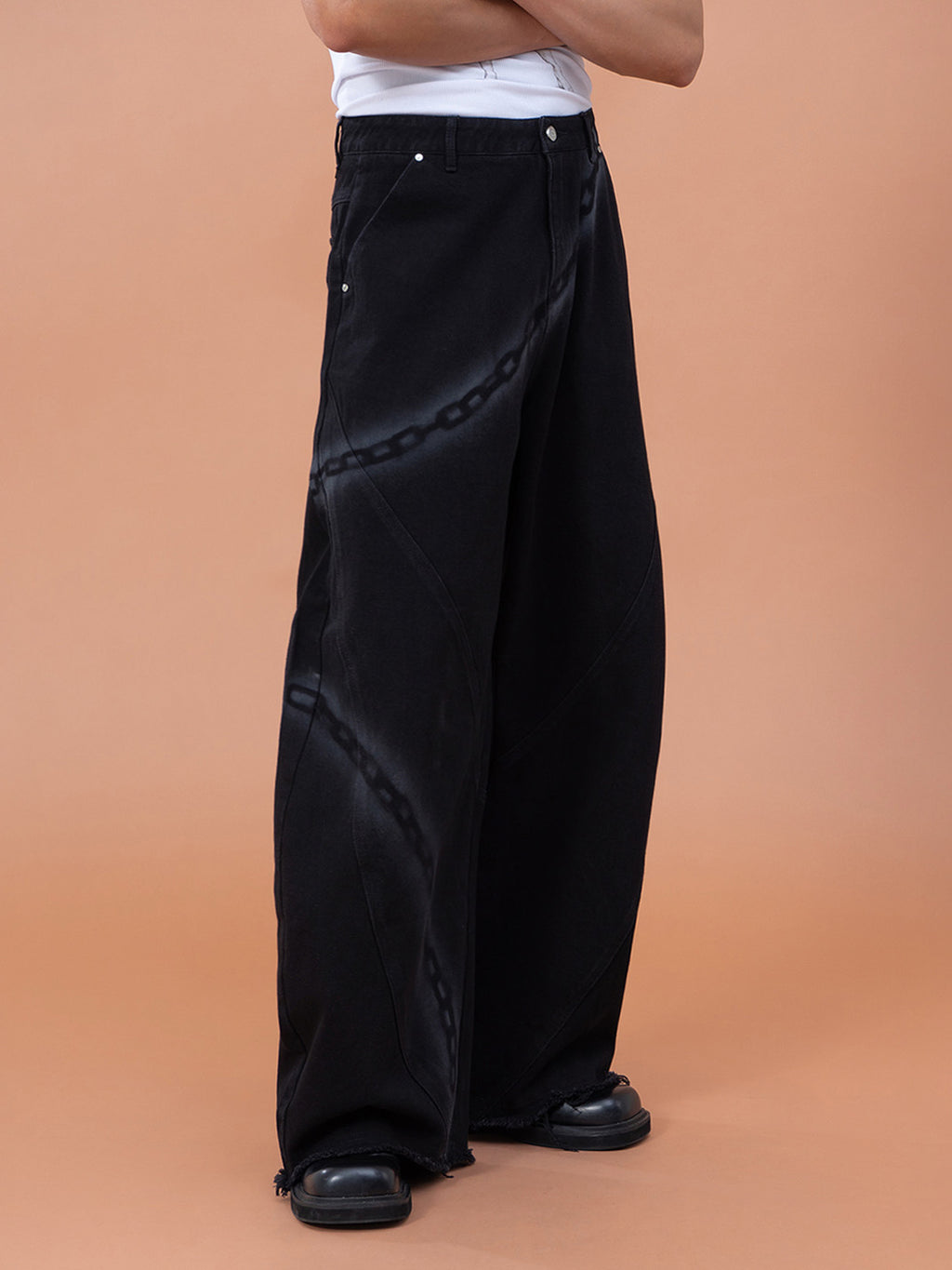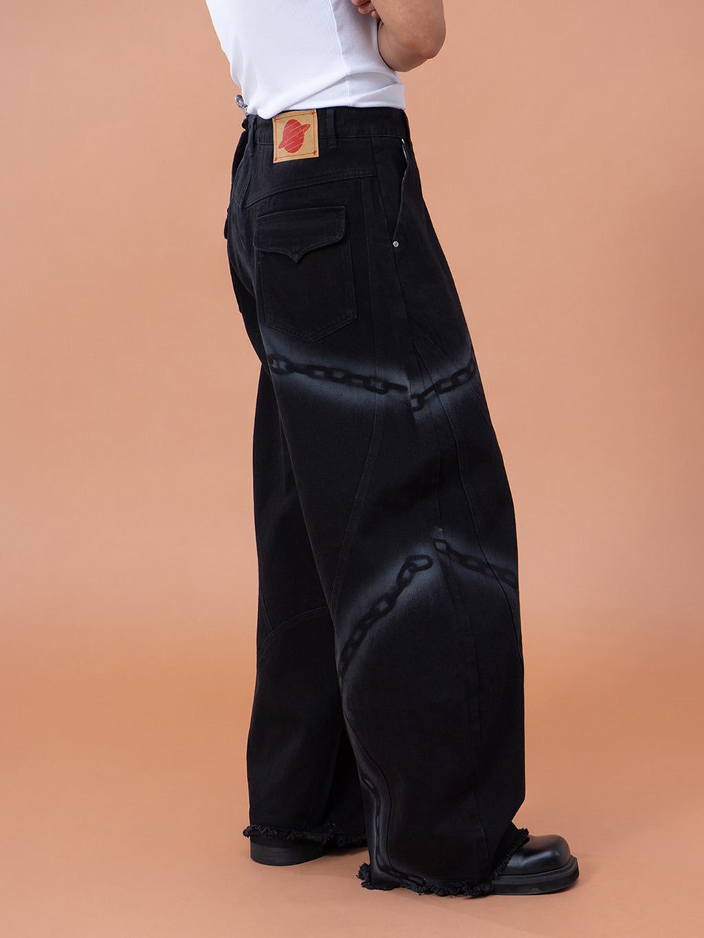 CLP | Chain Print Wide-Leg Denim Pants Skip to content