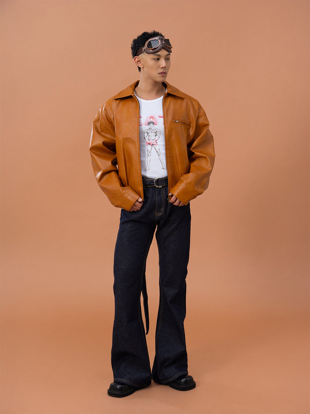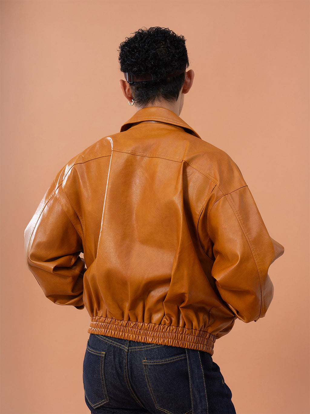 CLP | Oversized Turn-Down Collar Faux Leather Jacket Skip to content