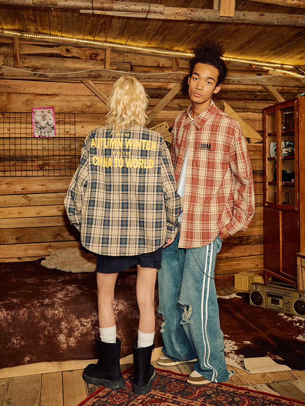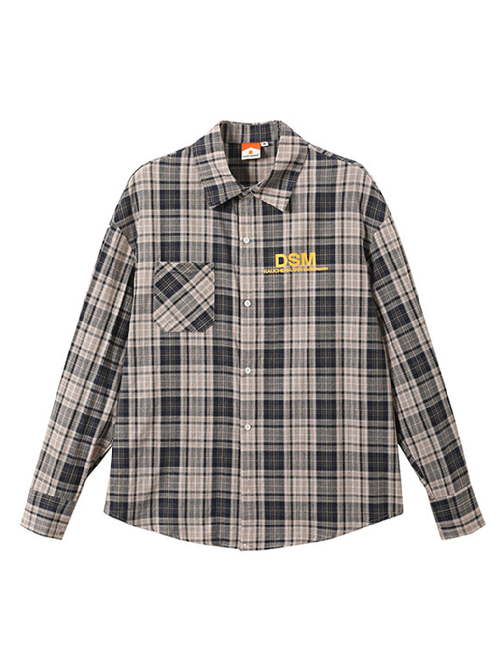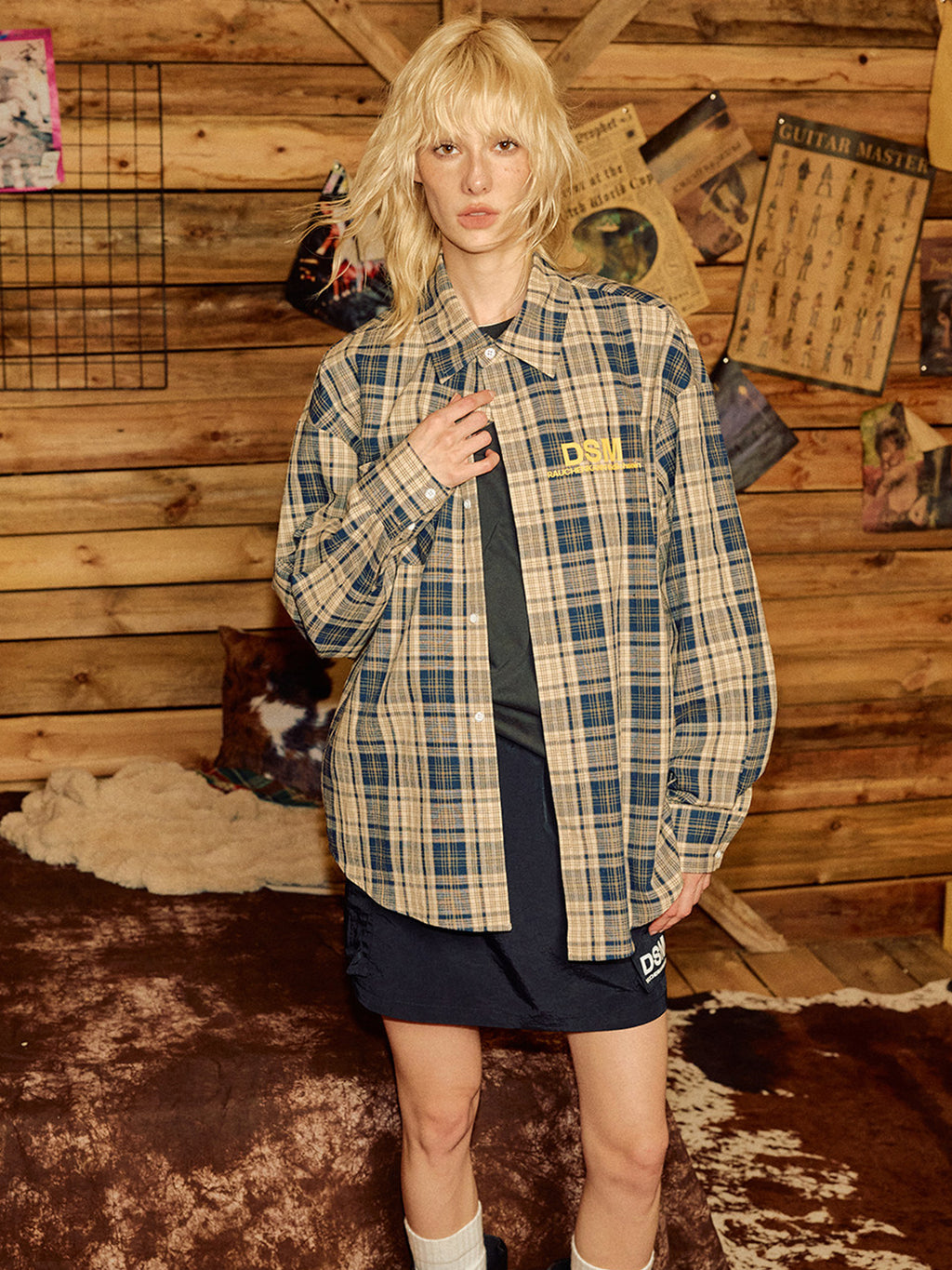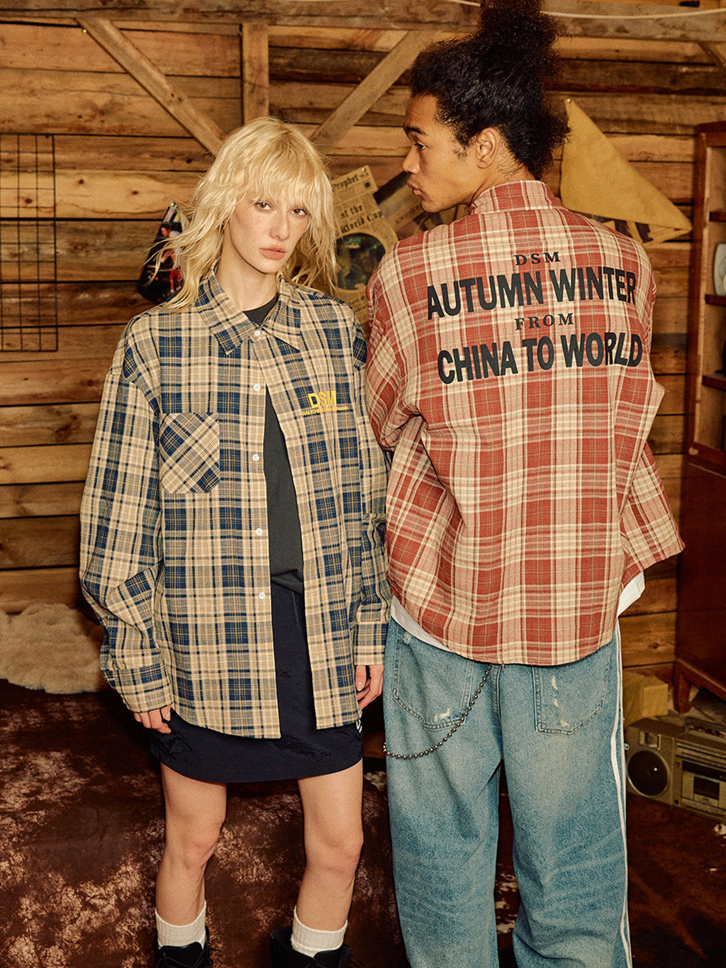 DONSMOKE | Color-Blocked Plaid Shirt Skip to content