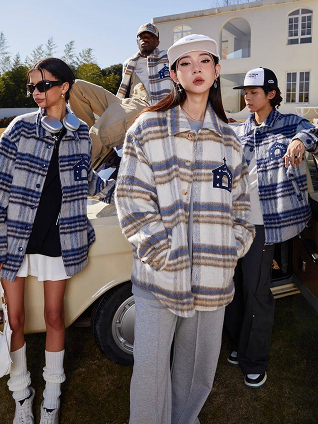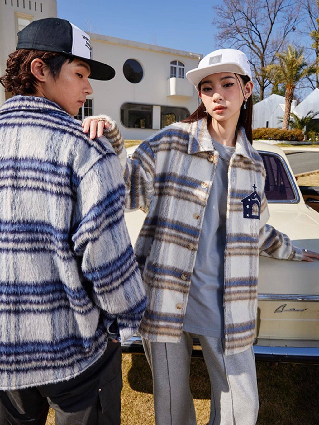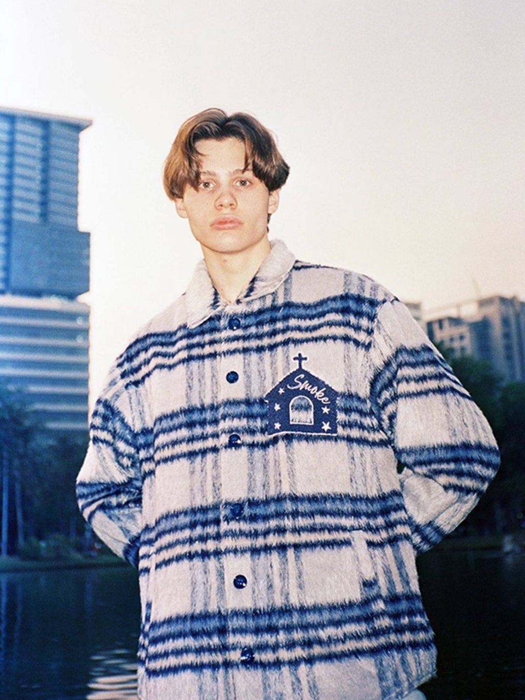 DONSMOKE | Wool Plaid Terry Cloth Coat Skip to content
