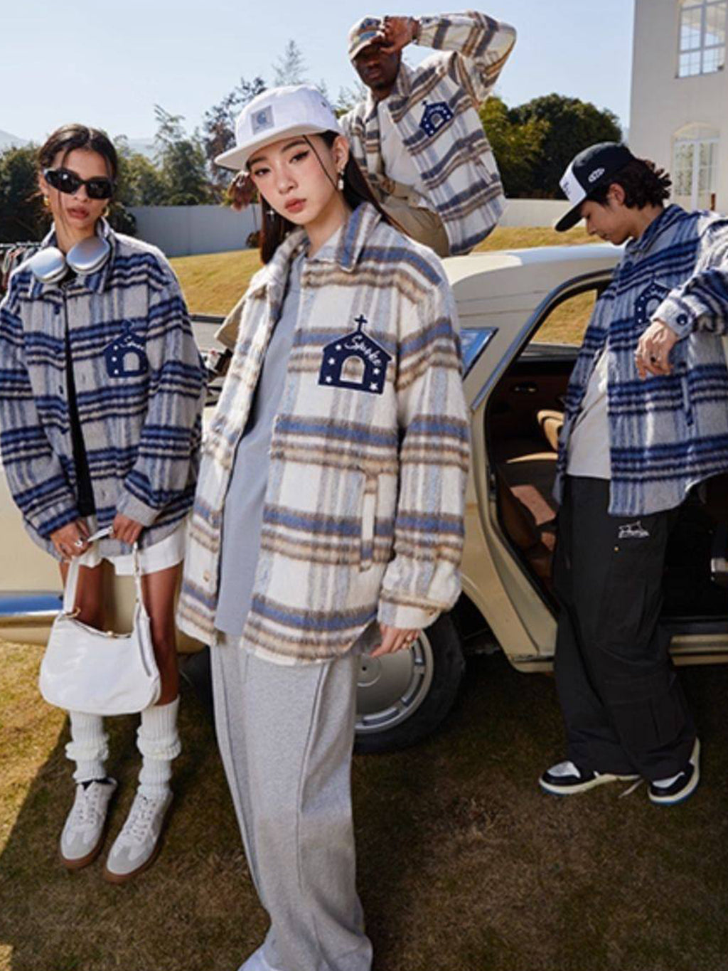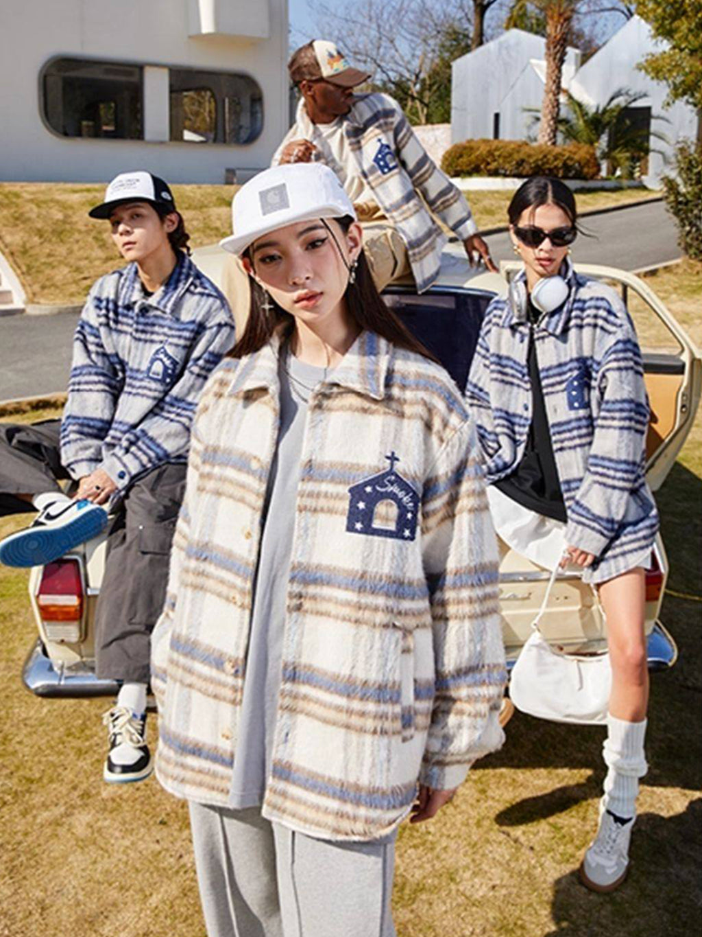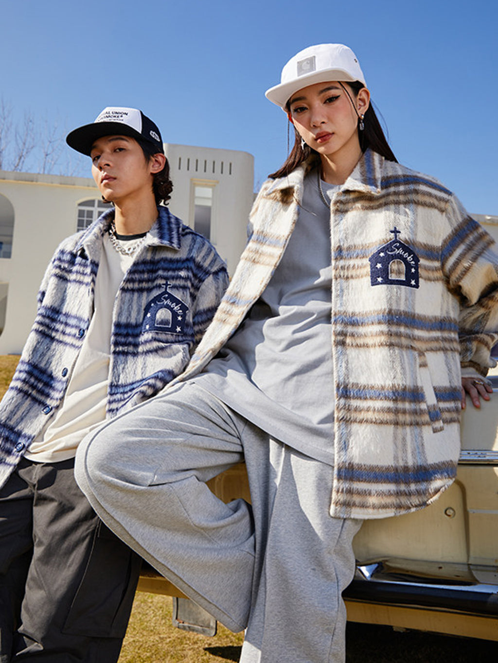 DONSMOKE | Wool Plaid Terry Cloth Coat Skip to content
