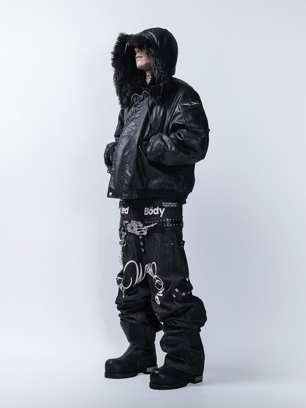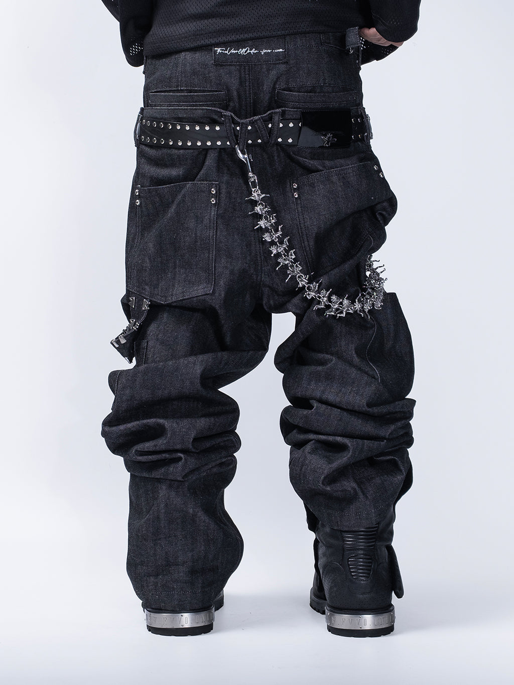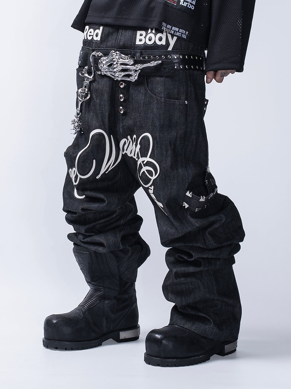 FVVO | Layered-Waist Patterned Studded Jeans Skip to content