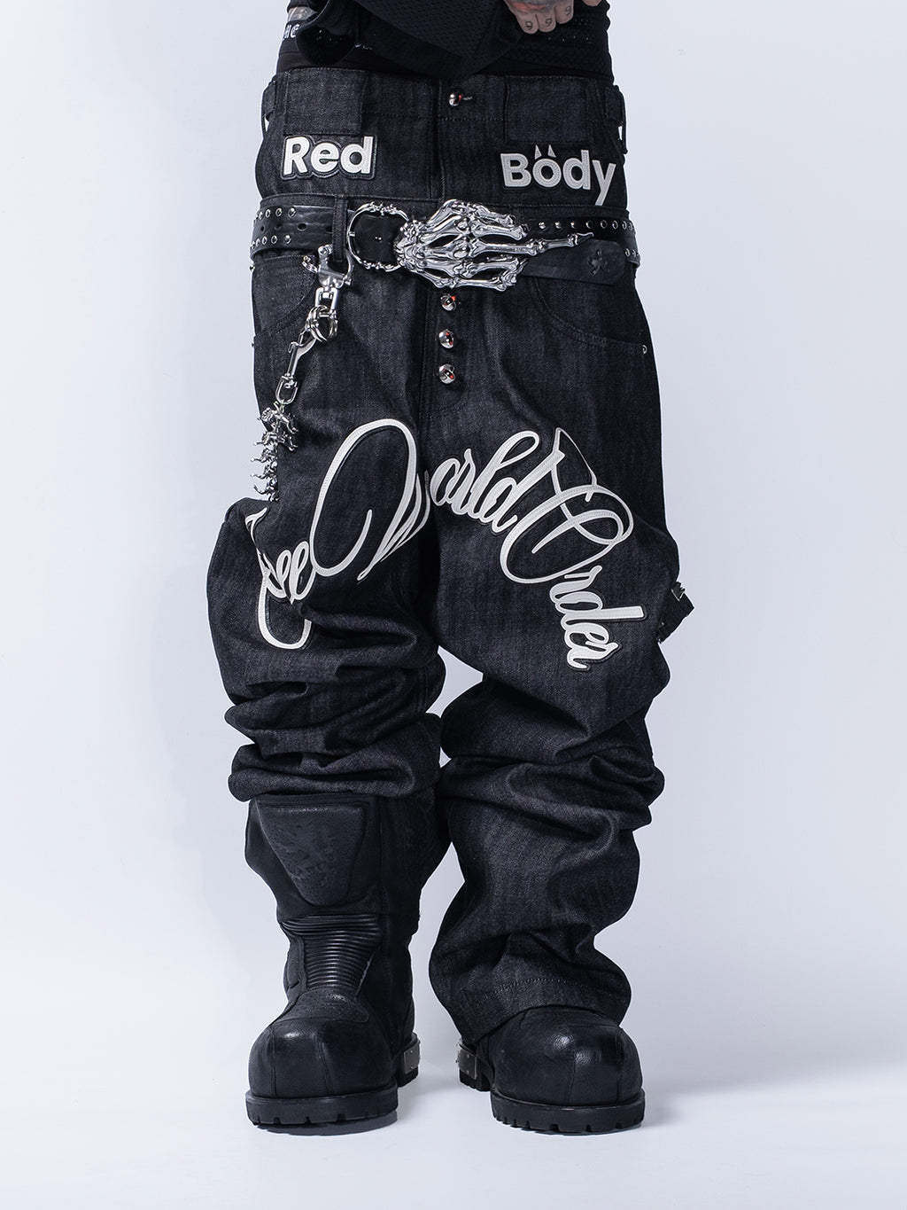 FVVO | Layered-Waist Patterned Studded Jeans