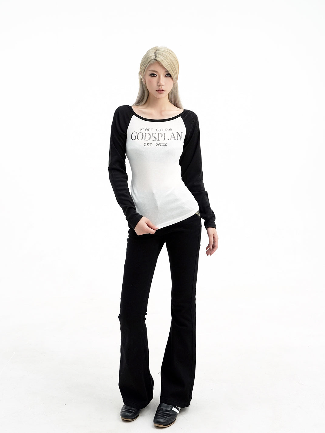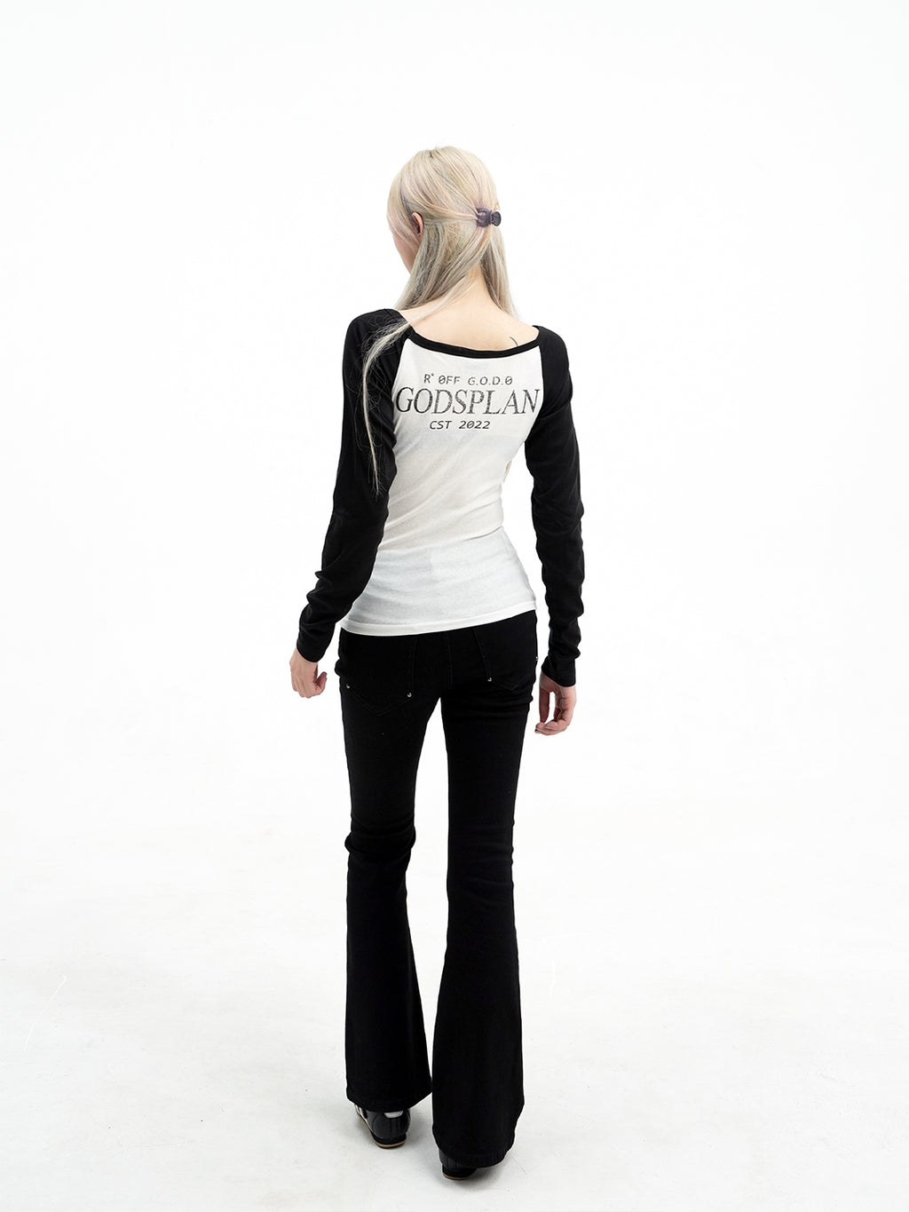 Gods plan | Basic Patchwork Color Block Long Sleeve Top