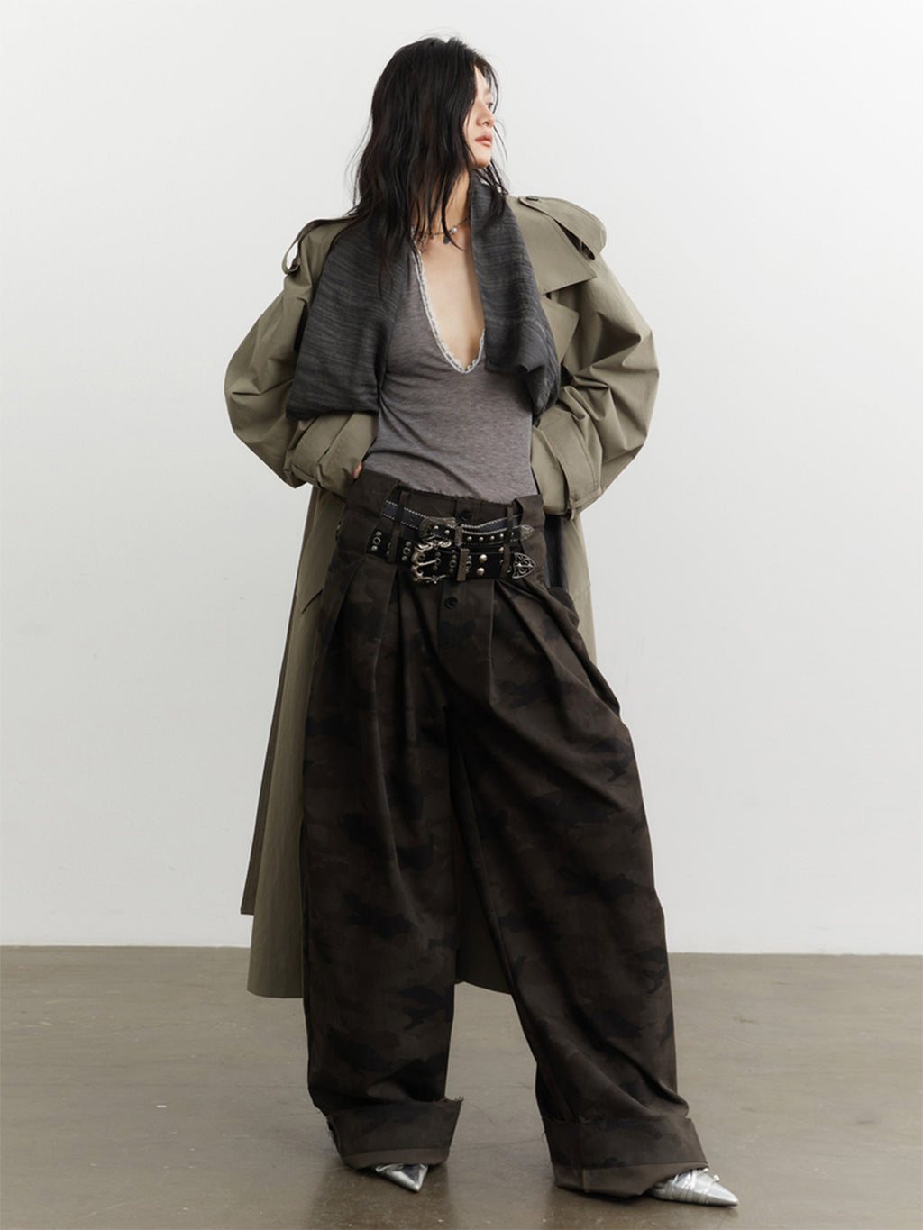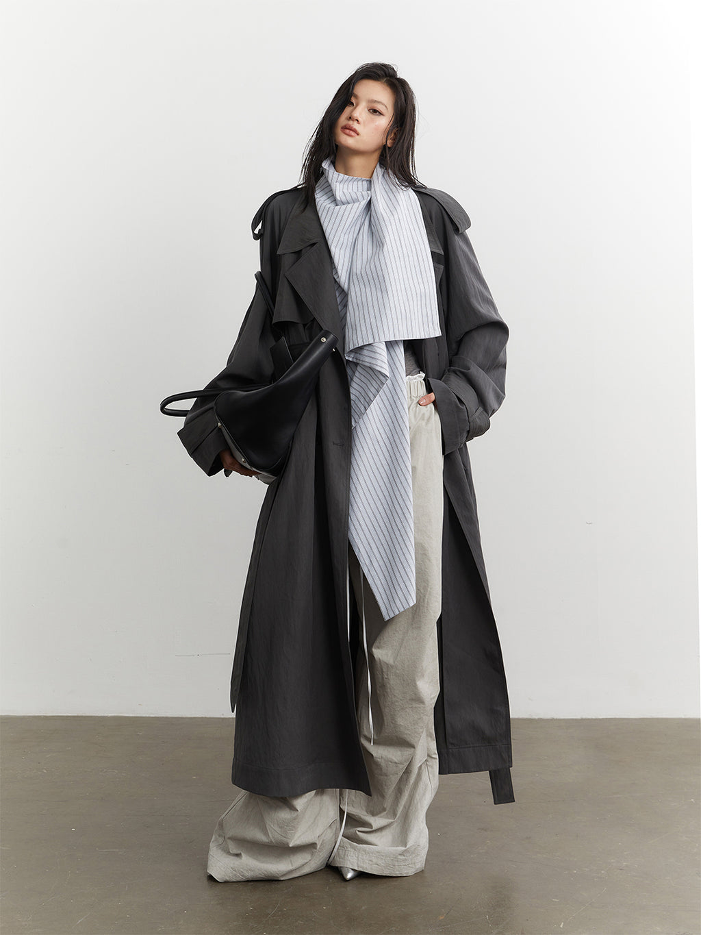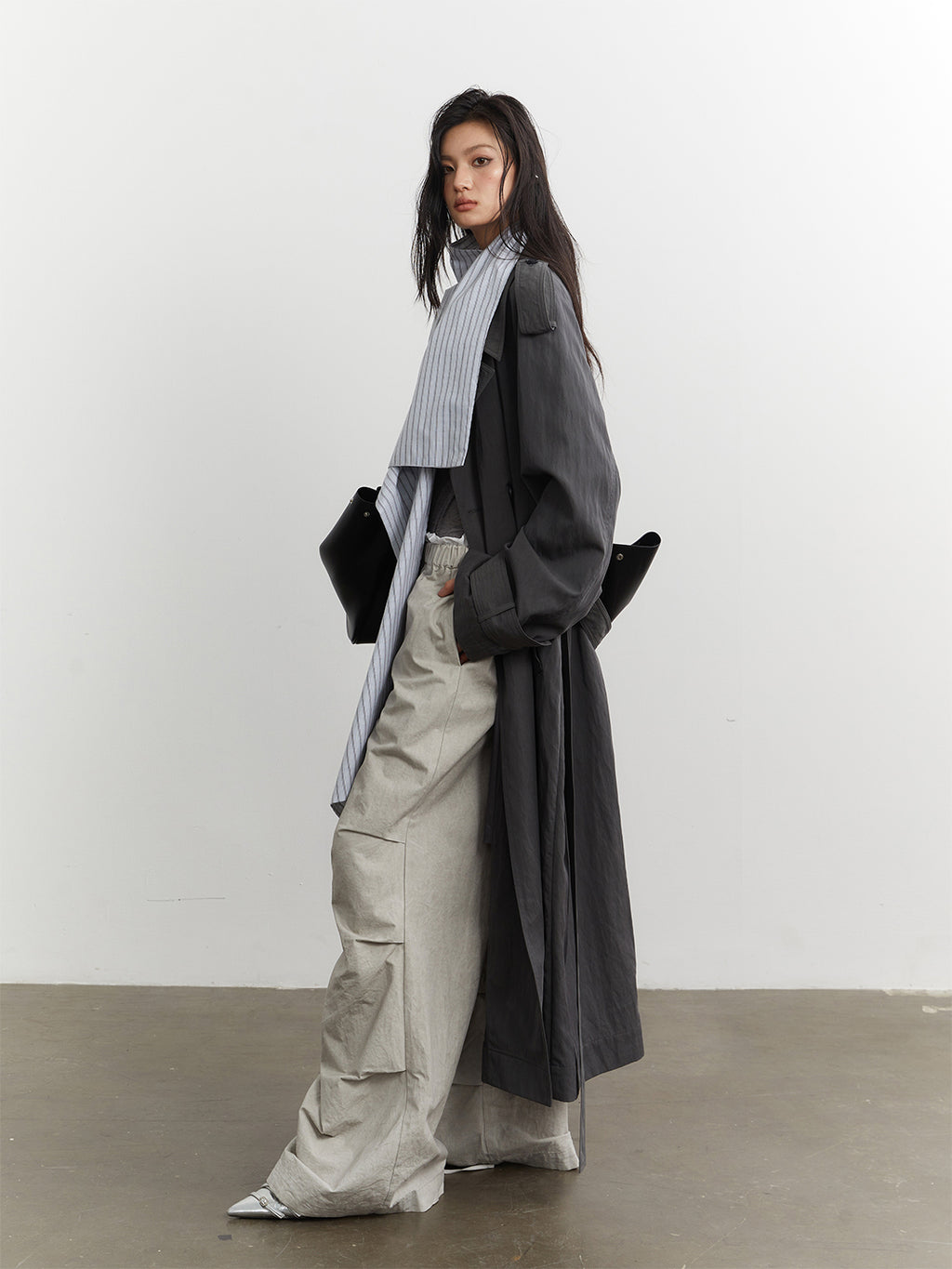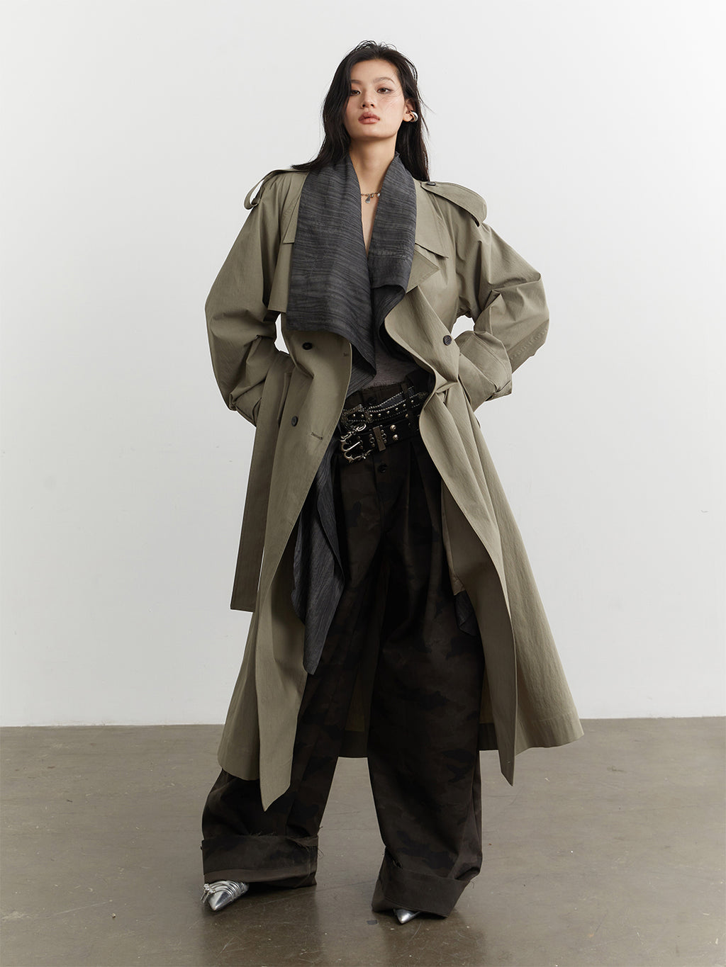 Jnylon Studios | Faux Two-piece Detachable Color-blocked Trench Coat Skip to content