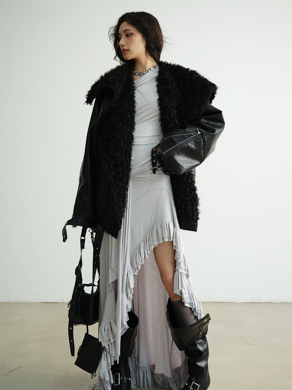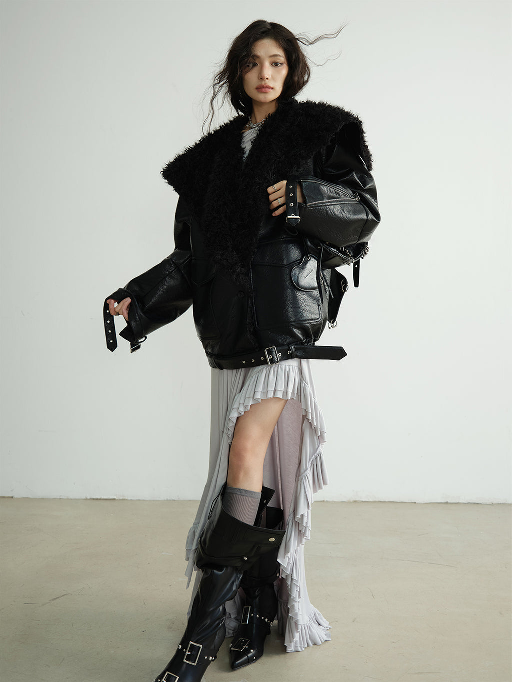 Jnylon Studios | Mid-Length Heavyweight PU Leather Silhouette Jacket