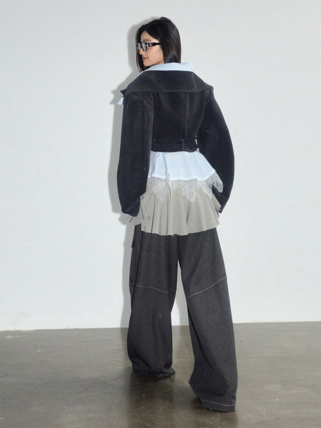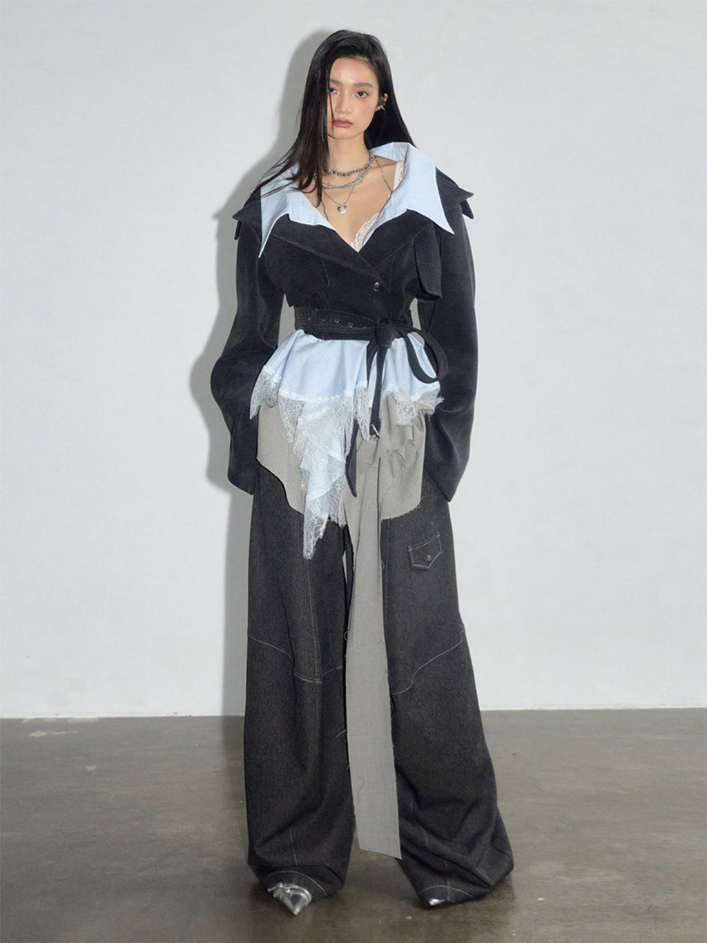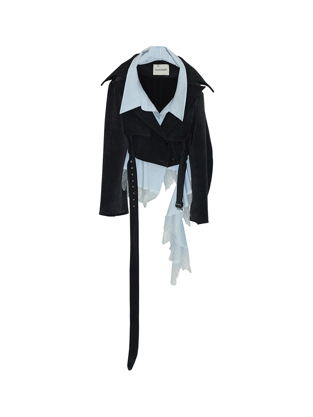Jnylon Studios | Off-Shoulder Faux Two-Piece Lace Detachable Jacket