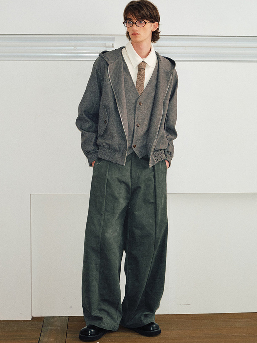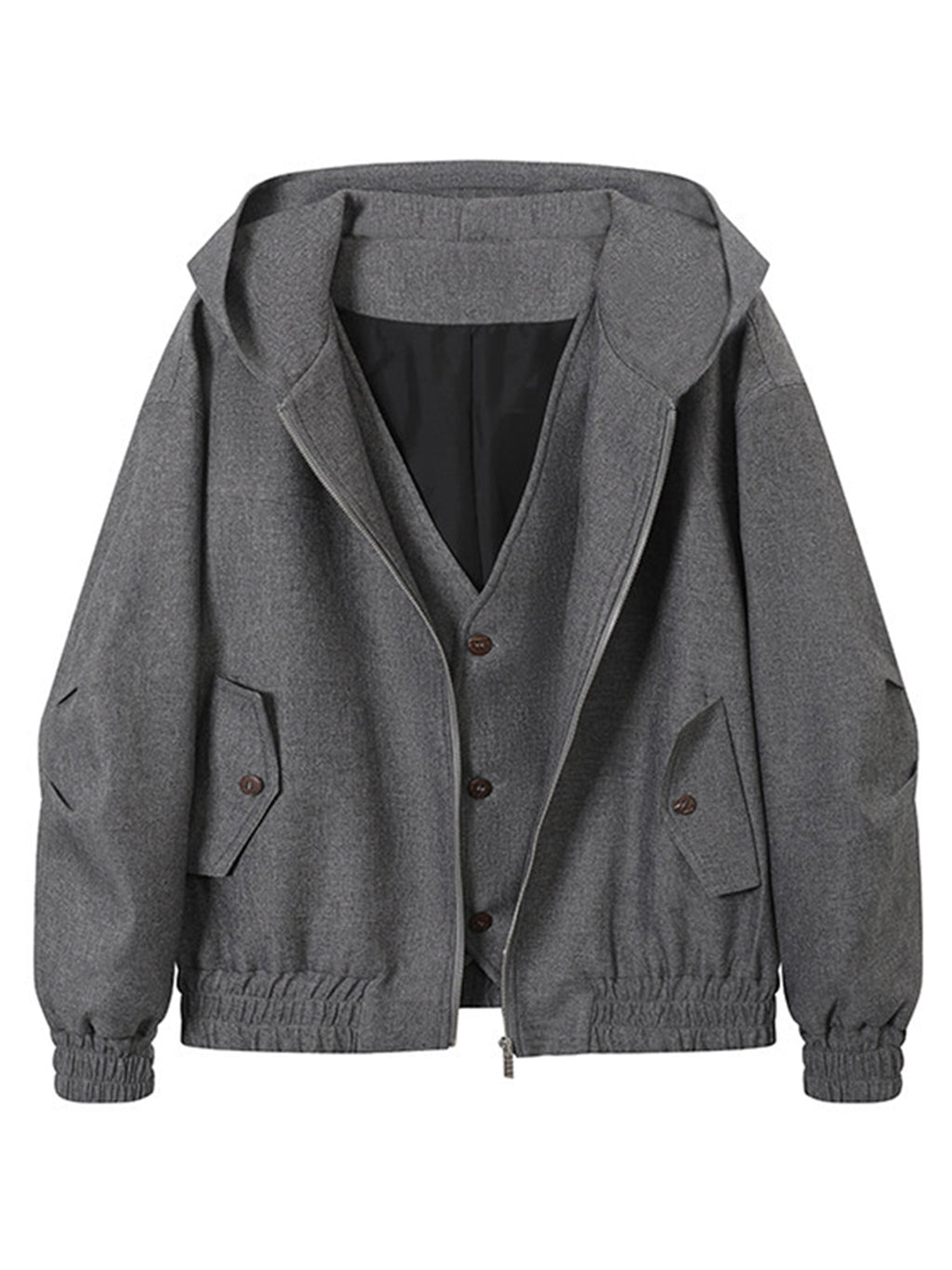 KREATE | Faux Two-Piece V-Neck Spliced Casual Jacket
