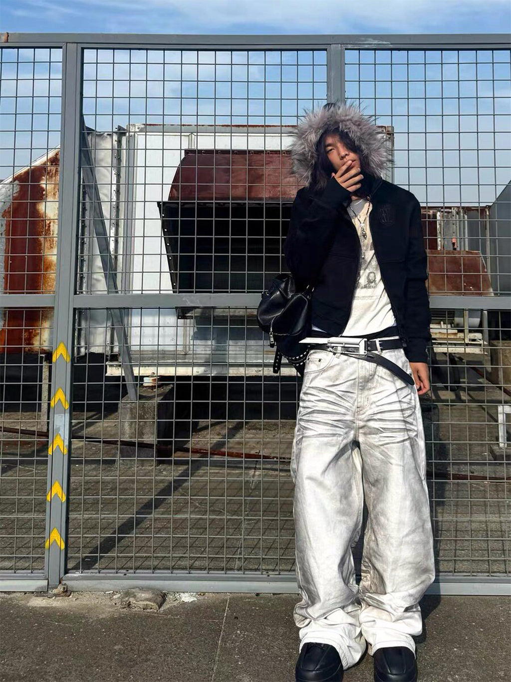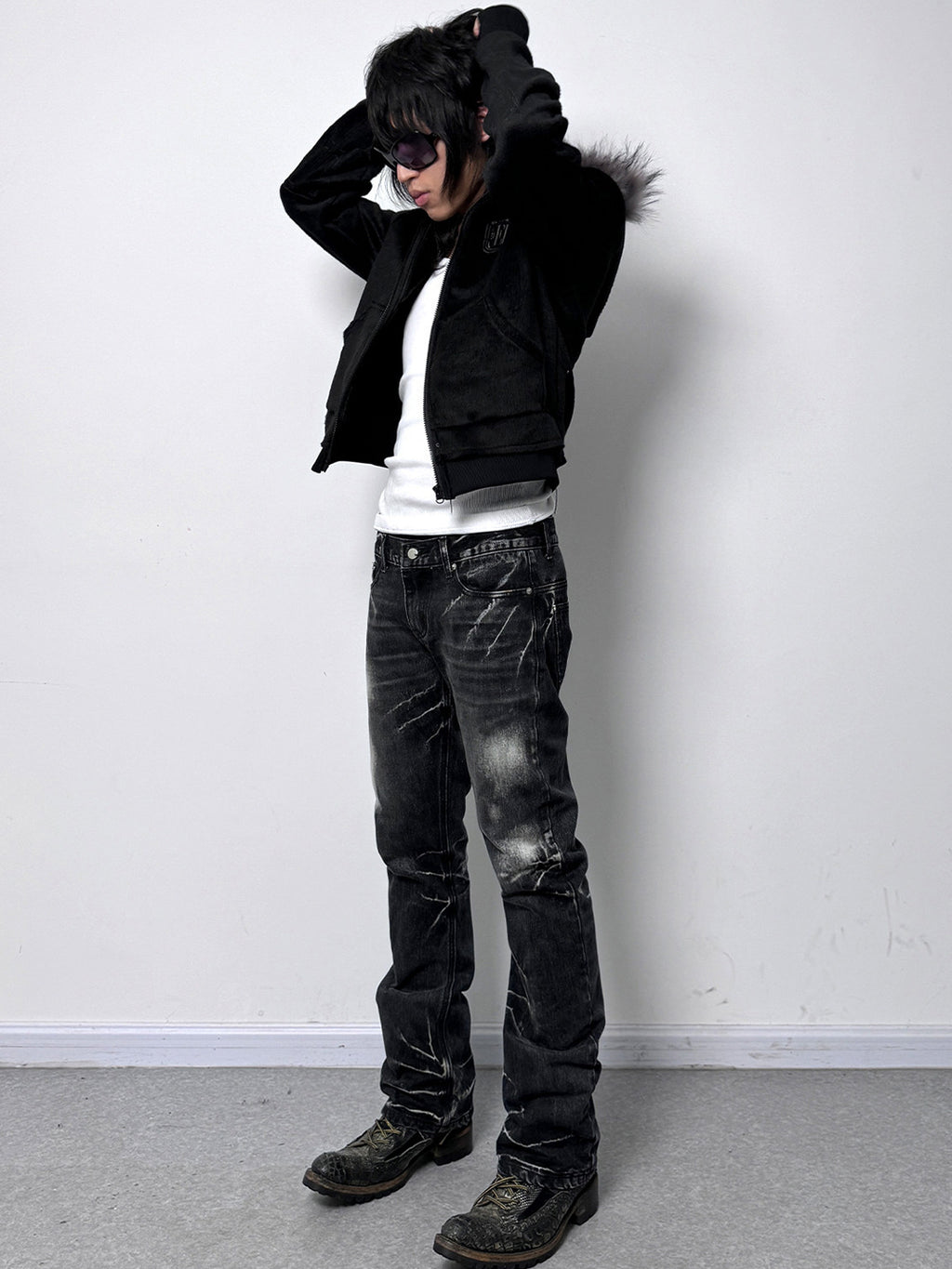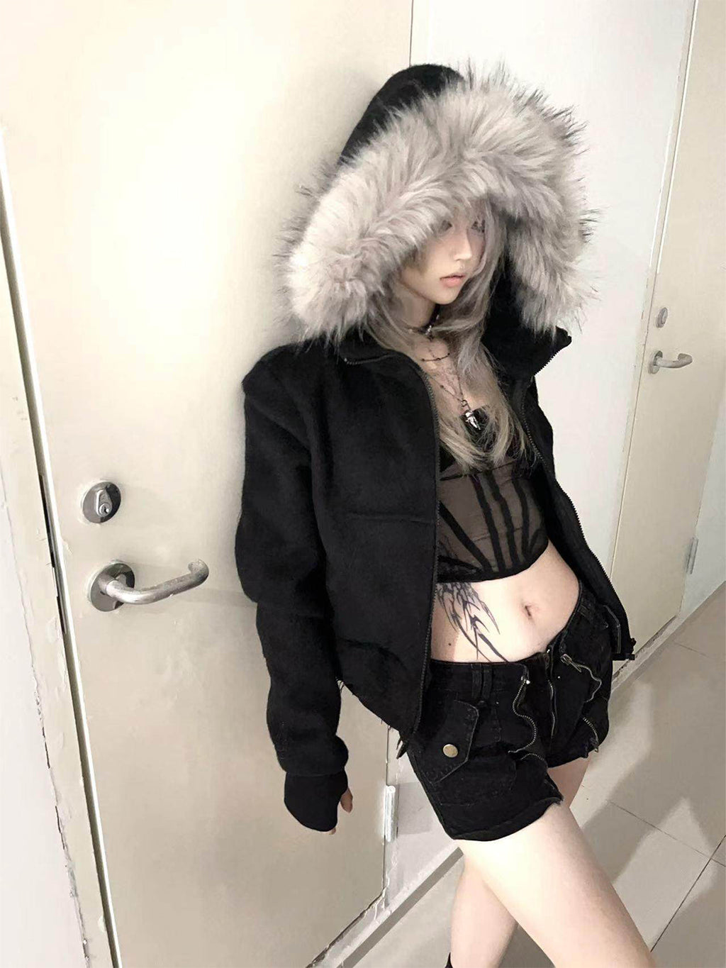 noEmosen | Hooded Gold Raccoon Fur Tassel Hem Sweatshirt Skip to content