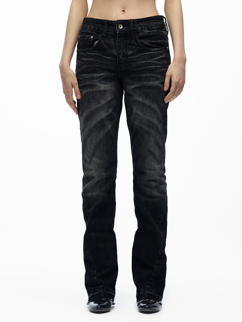 noEmosen | Pleated Whiskering Deconstructed Jeans Skip to content