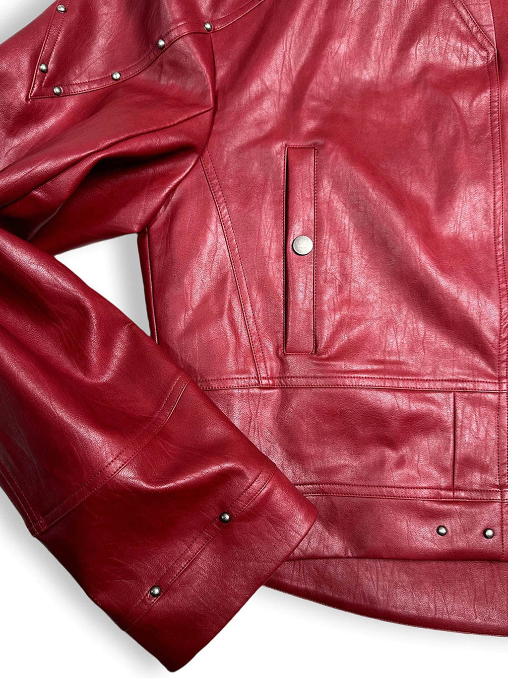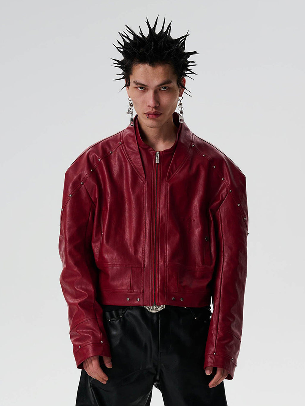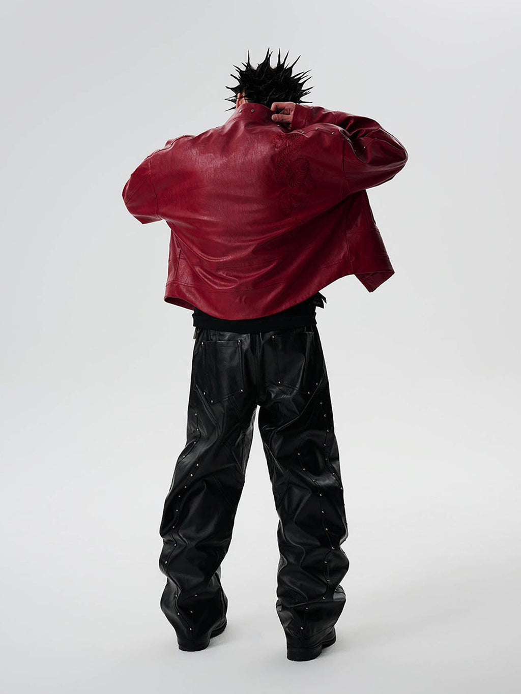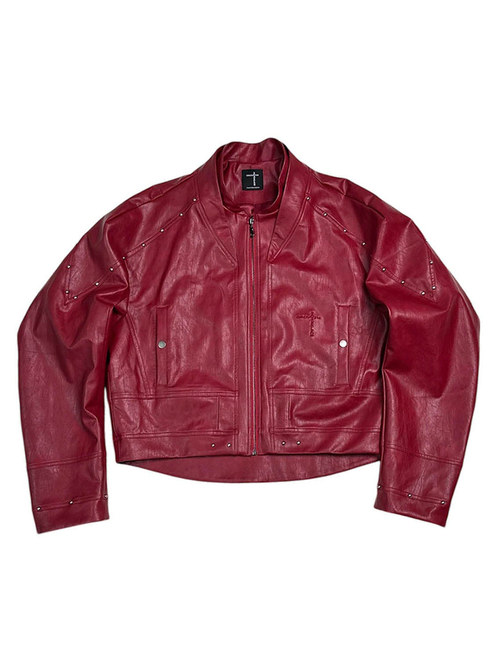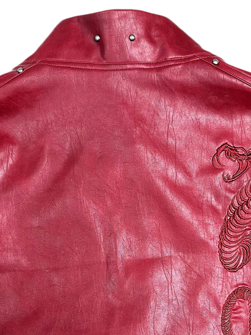 The Snake Bone Embroidered Rivet Cropped PU Jacket is a bold fusion of streetwear and punk-inspired design. This standout piece features metal rivets embedded along the shoulder and sleeve seams, adding an edgy and rebellious vibe. On the back, a striking snake bone embroidery catches the eye, while the curved hemline enhances its unique silhouette. The double-layered stand collar offers a structured, modern finish, making this slightly oversized cropped jacket a perfect choice for those who appreciate daring and unconventional fashion. Crafted from premium fabric, it exudes both quality and style.