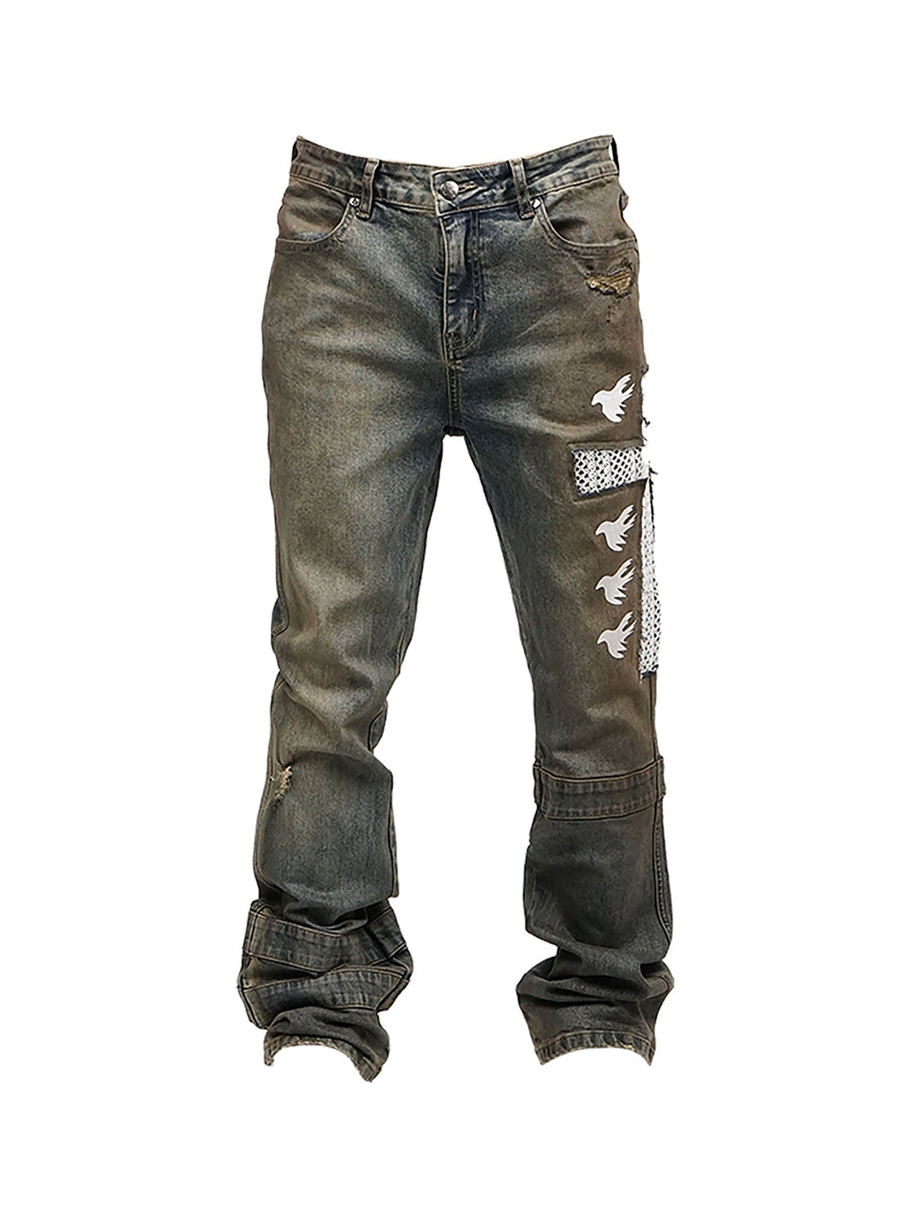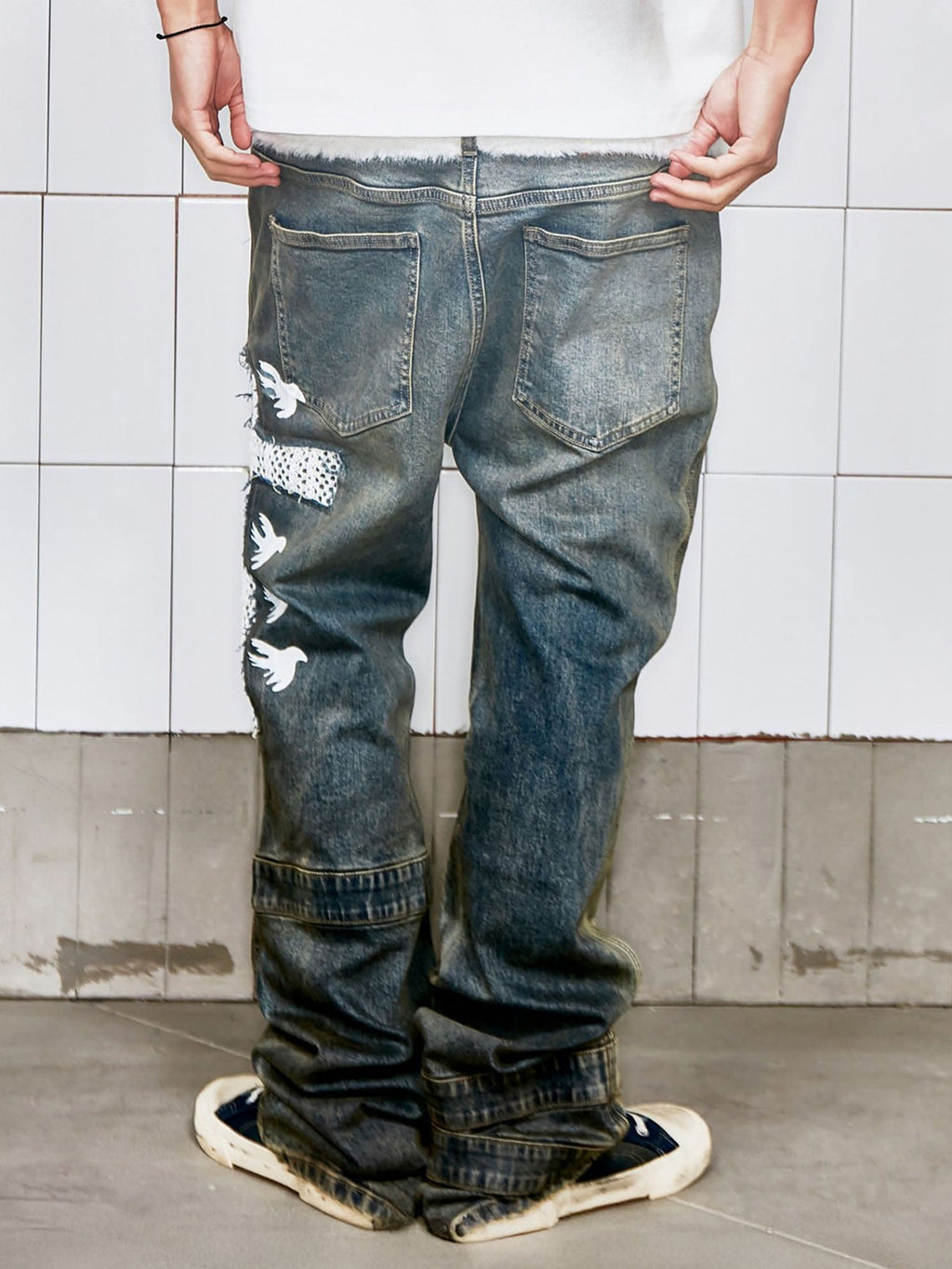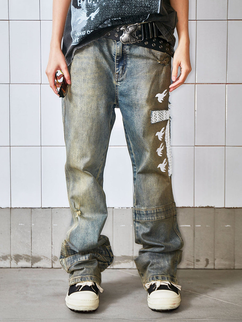 VINKID | Cutout Cross & Peace Dove Patchwork Washed Jeans