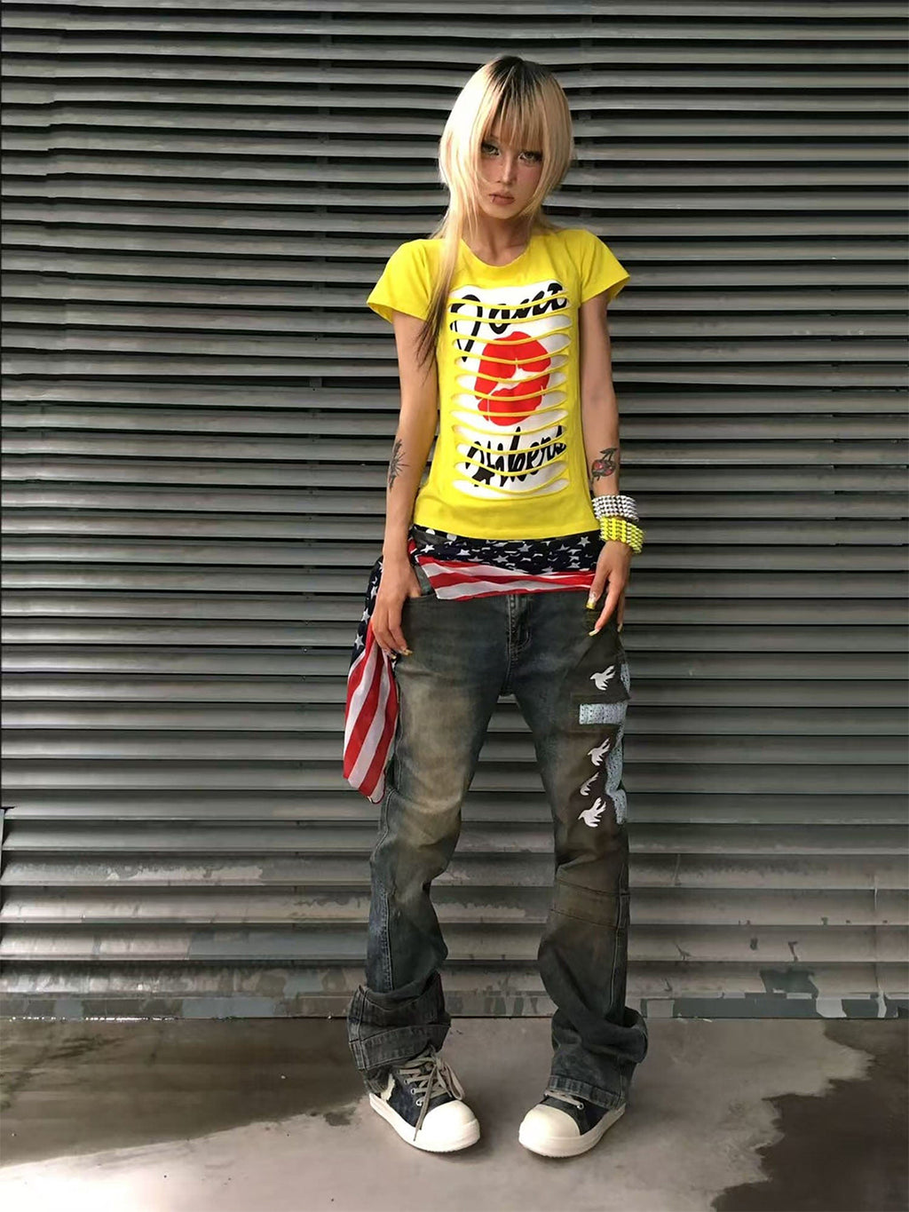 VINKID | Cutout Cross & Peace Dove Patchwork Washed Jeans Skip to content