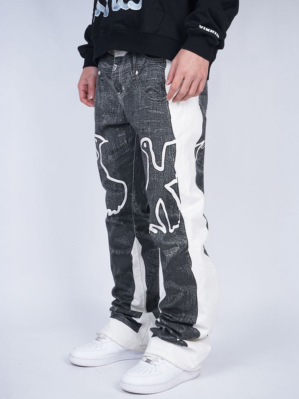 VINKID | Faux-Layered Dove Graphic Contrast Panel Jeans