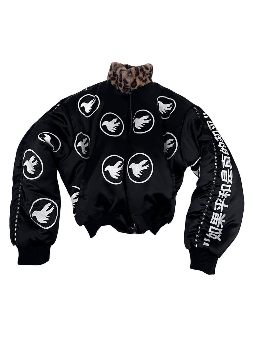 VINKID | Leopard Print Fur Collar All-Over Pigeon Jacket