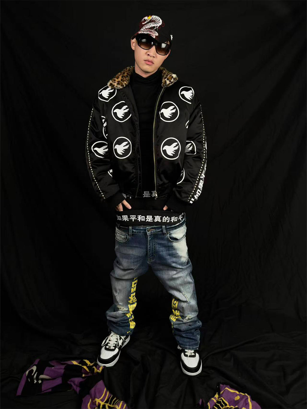 VINKID | Leopard Print Fur Collar All-Over Pigeon Jacket Skip to content