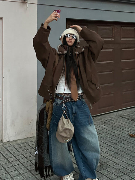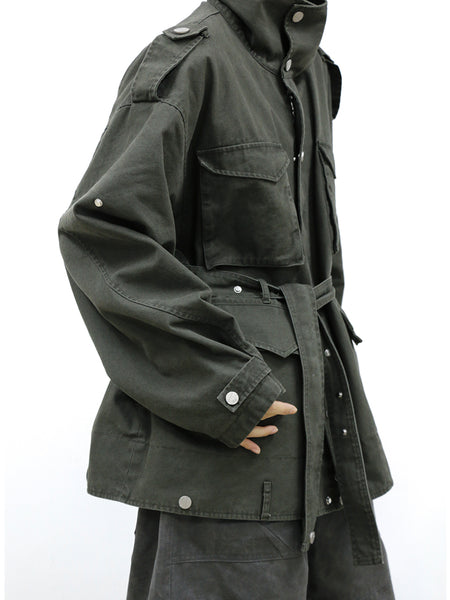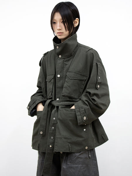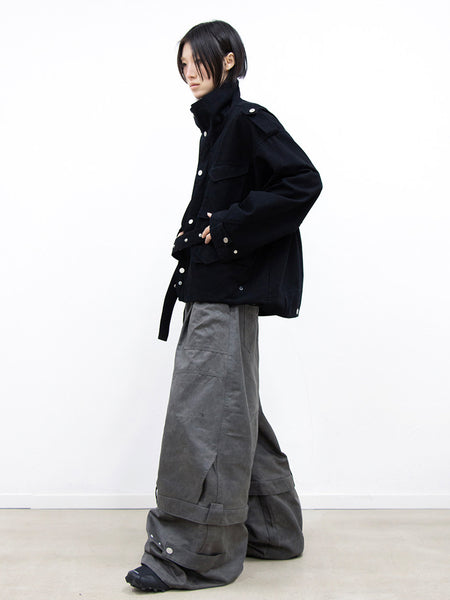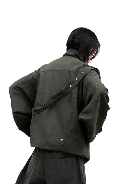 RELABEL | Multi-Pocket Detachable Scarf Distres...