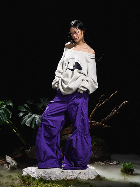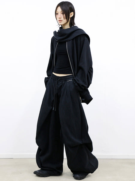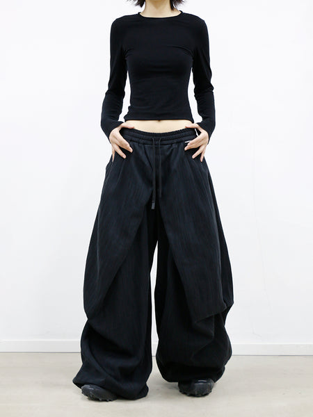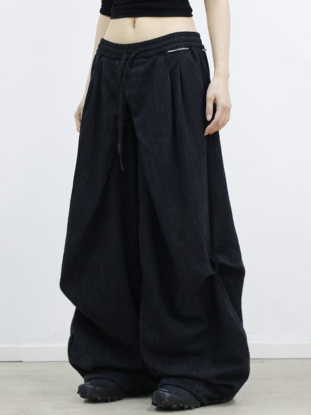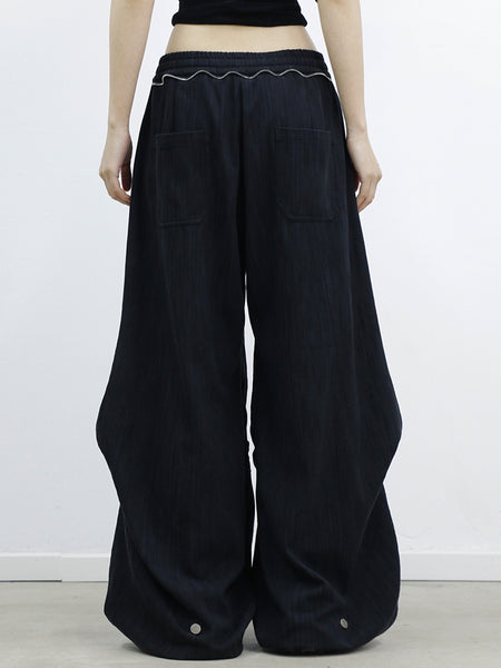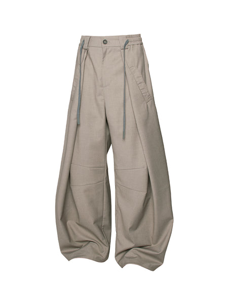 RELABEL | Pleated Drawstring Curved Wide-Leg Tr...