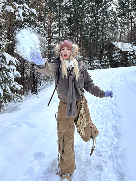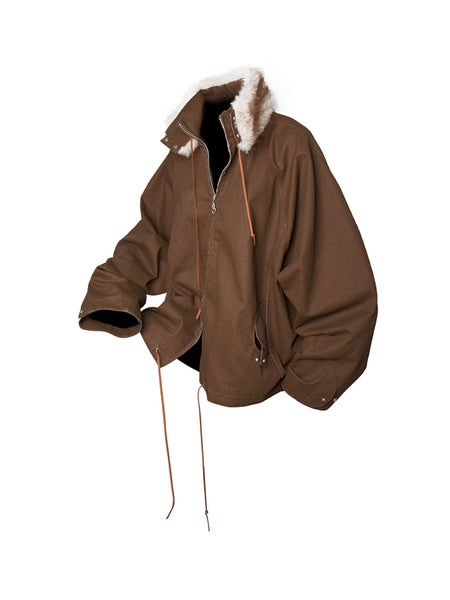 RELABEL | Detachable Faux Fur Collar Drawstring...