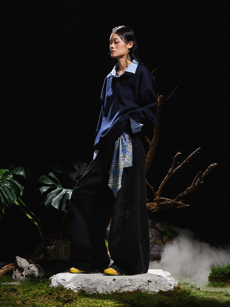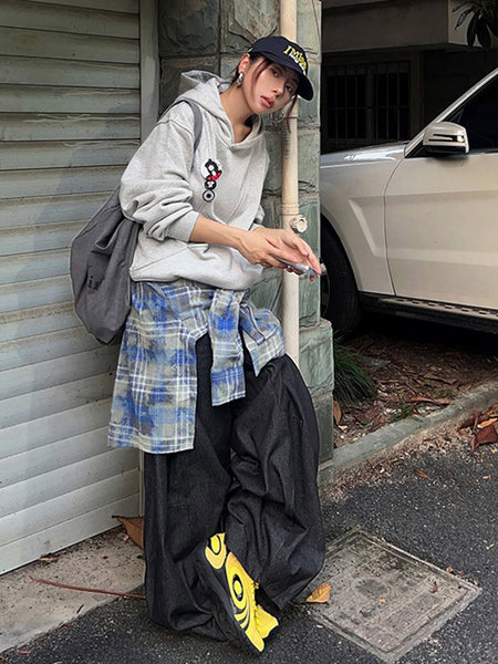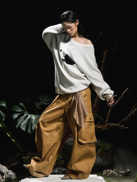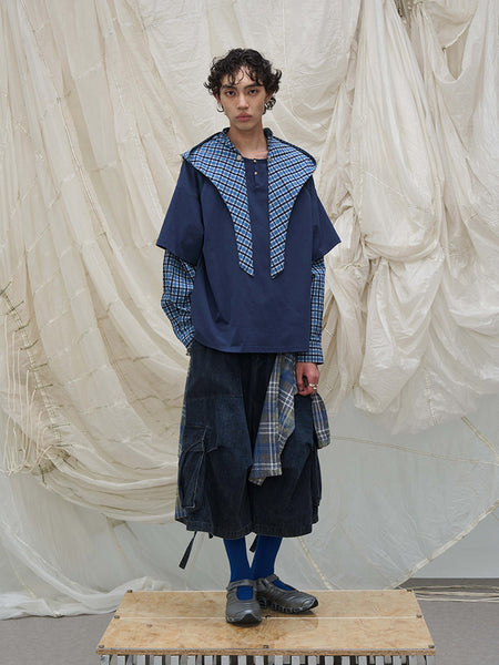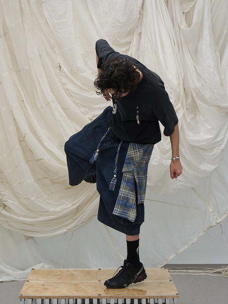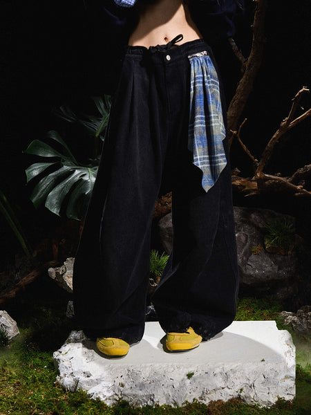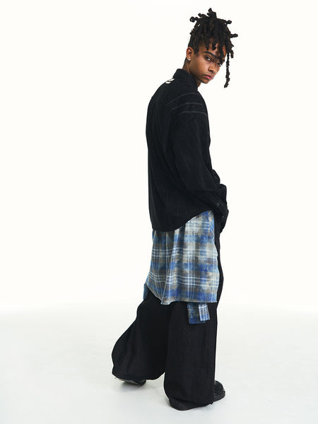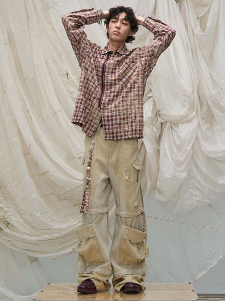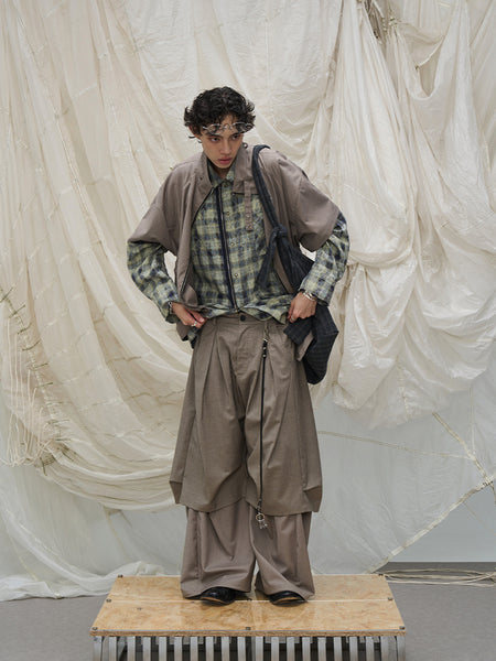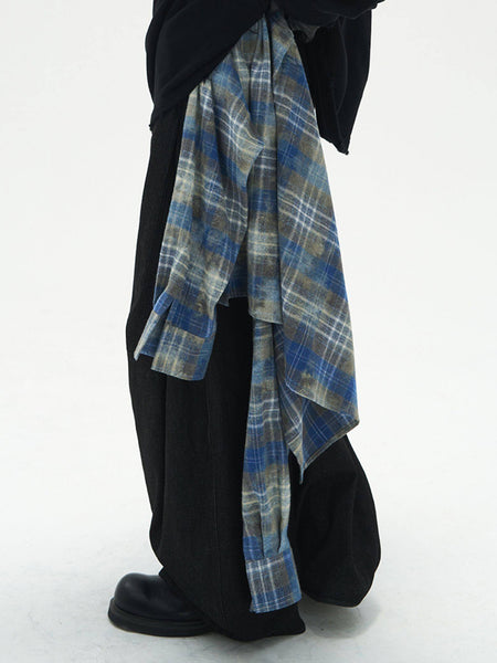 RELABEL | Detachable Plaid Flap Panel Wide-Leg ...