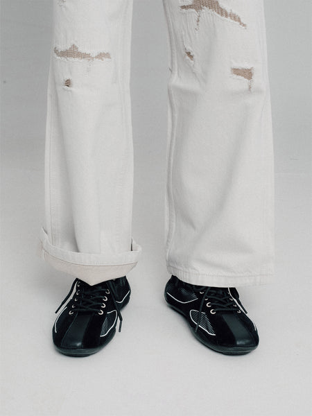 DYZZYMOTIF | Lace-Up Color-Blocked Suede Cowhid...