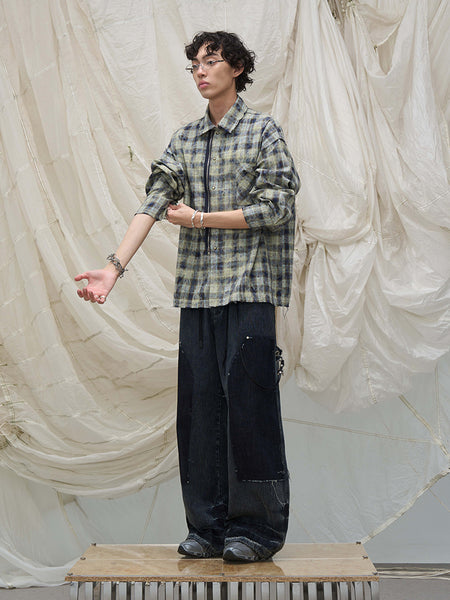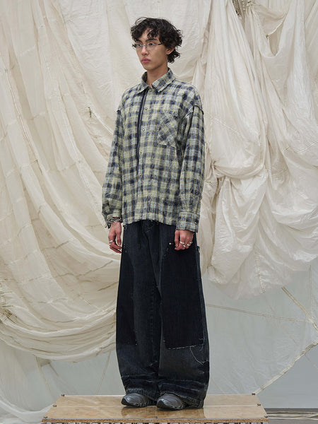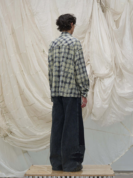 RELABEL | Tie-dye Plaid Dual Closure Frayed Shirt
