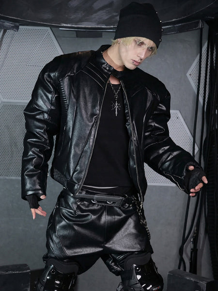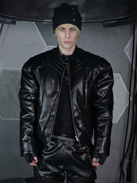 Jnylon Studios | Armor Open Collar PU Leather O...