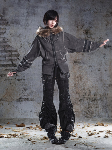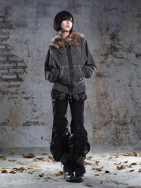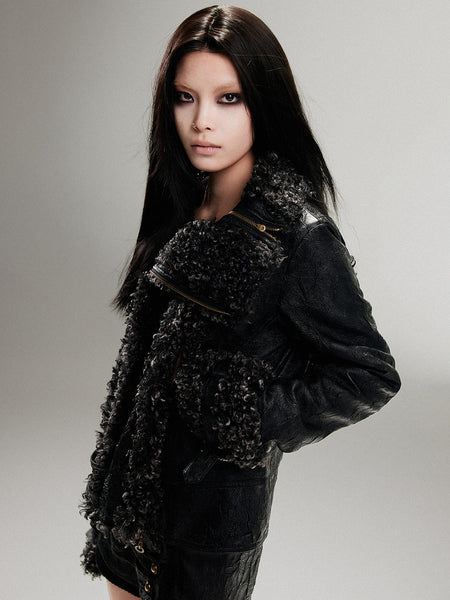 ARIADNAw | Hollow-Out Patchwork PU Jacket