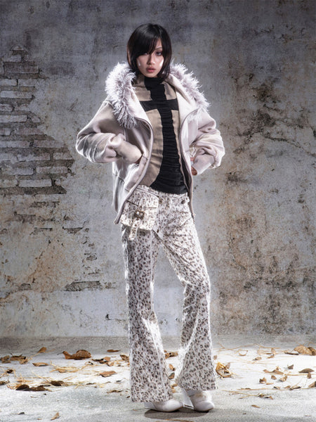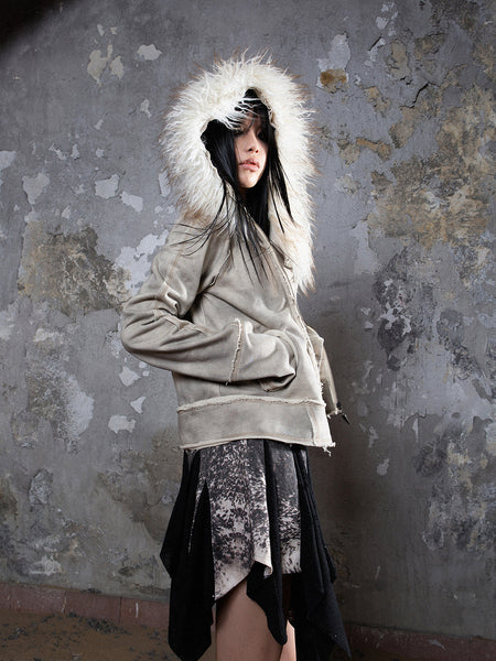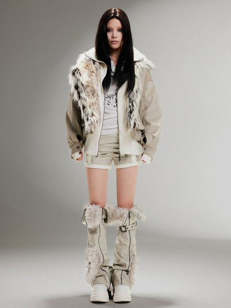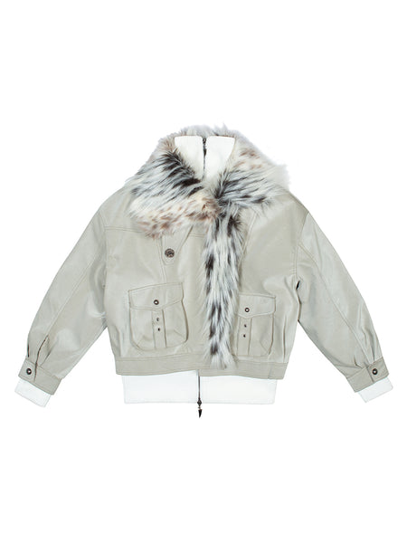 ARIADNAw | Fur Collar Stylish Slim-Fit Leather ...