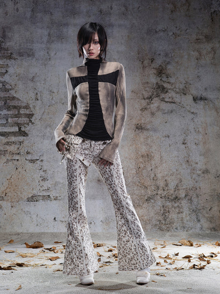 ARIADNAw | Slim Standing Collar Leopard Shirt B...