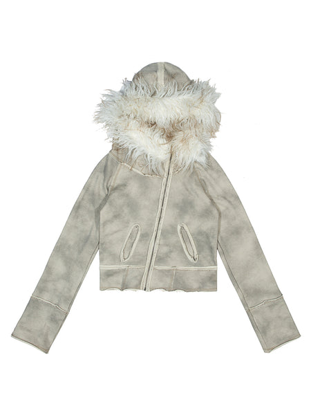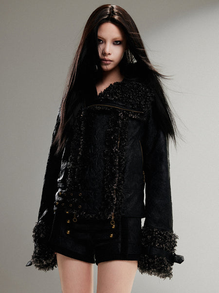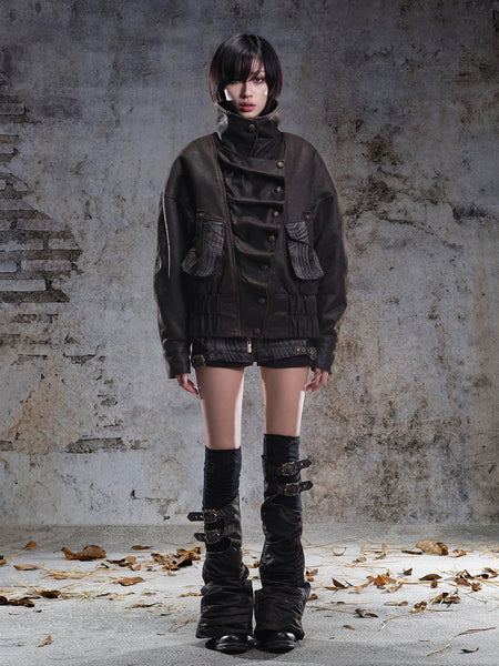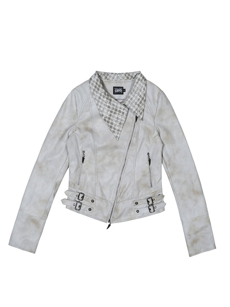 ARIADNAw | Asymmetric Collar Short Leather Jacket