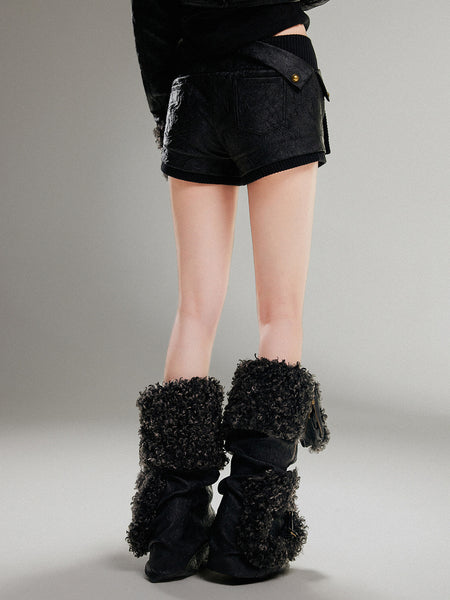 ARIADNAw | PU Patchwork Low Waist Shorts