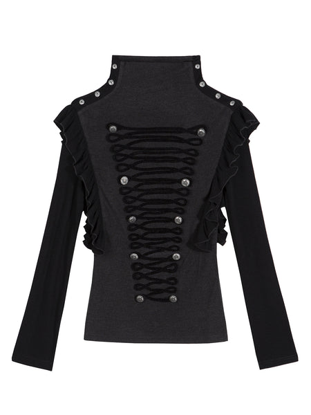 ARIADNAw | Ruffled Lace-Up Shoulder Turtleneck Top