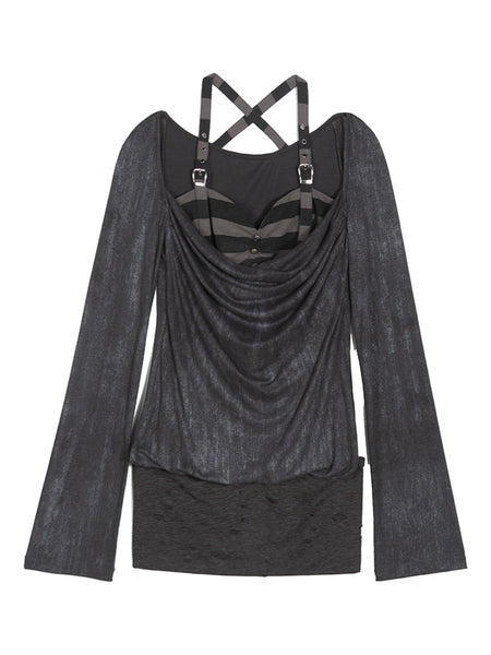 ARIADNAw | Asymmetrical Faux Two-Piece Long-Sle...