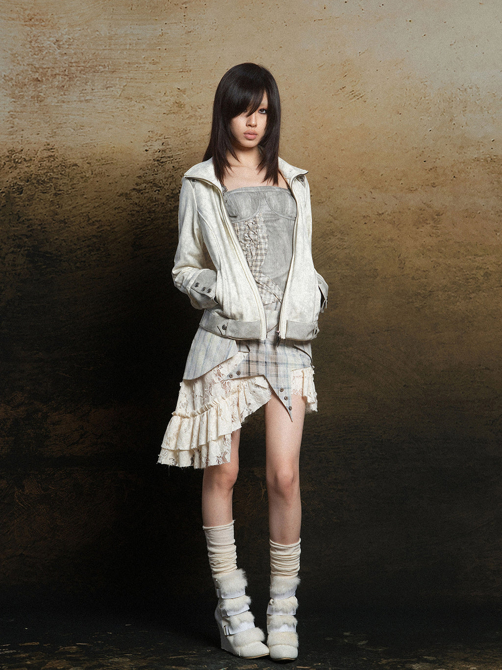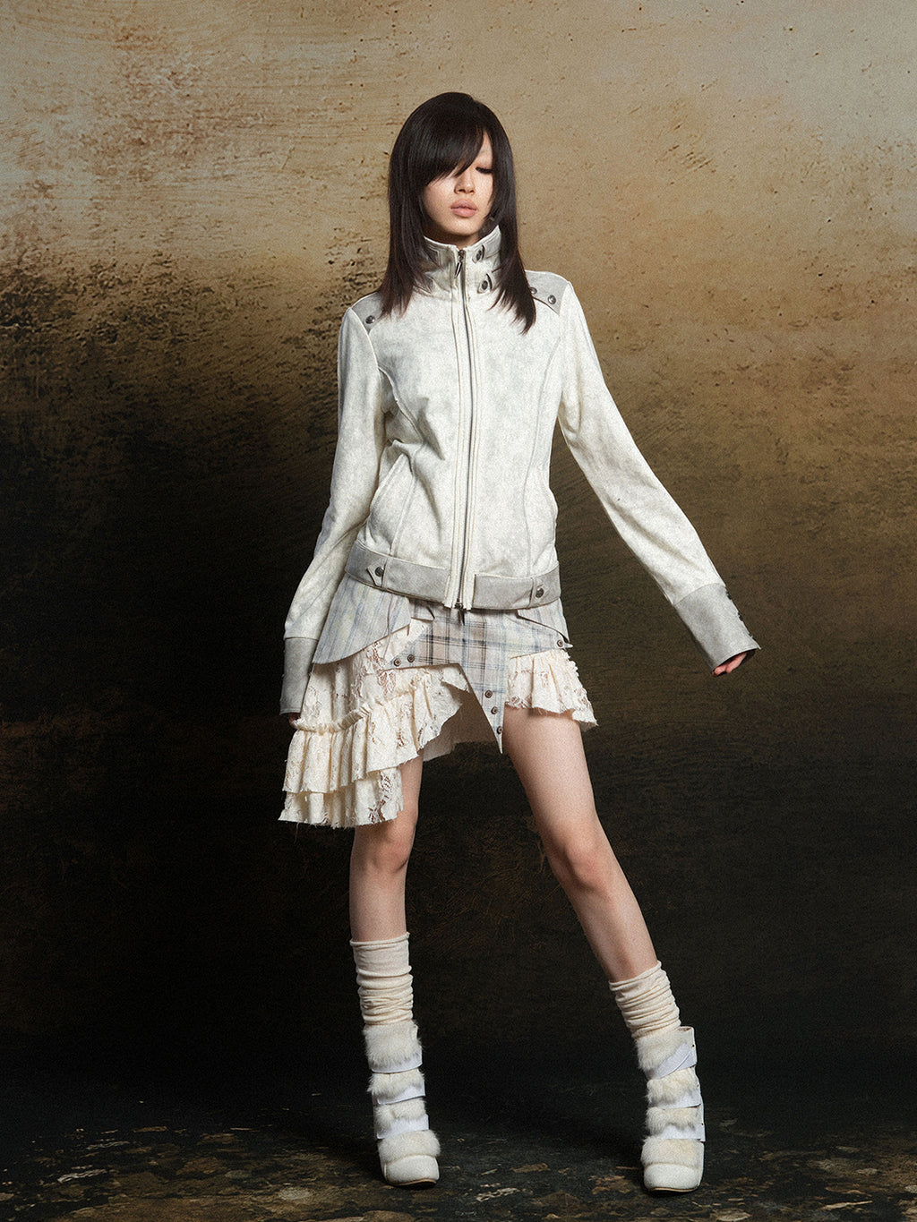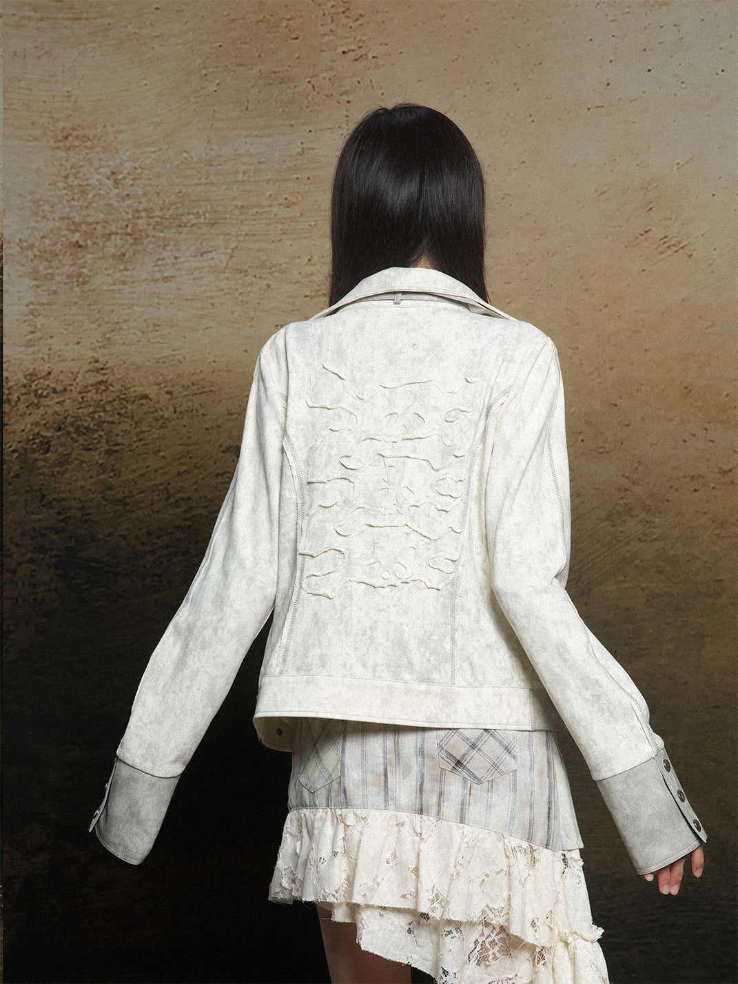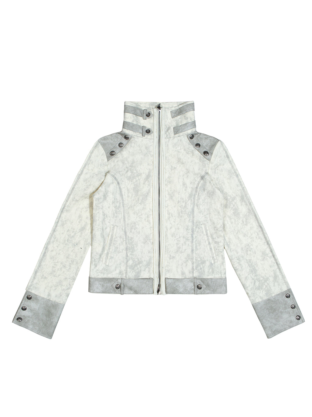 ARIADNAw | Hollow-Out Patchwork PU Jacket Skip to content