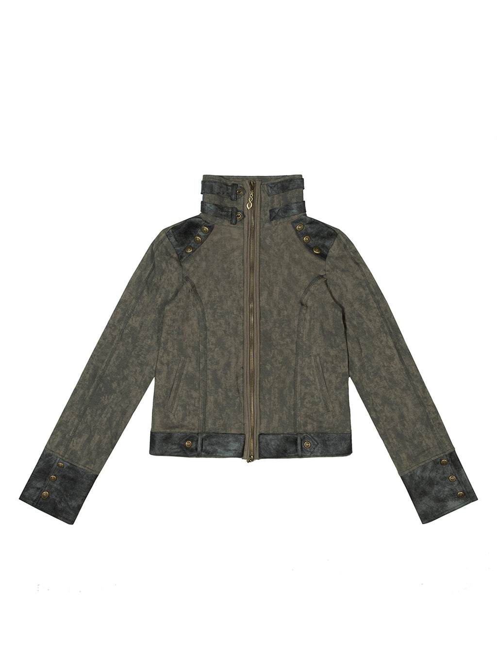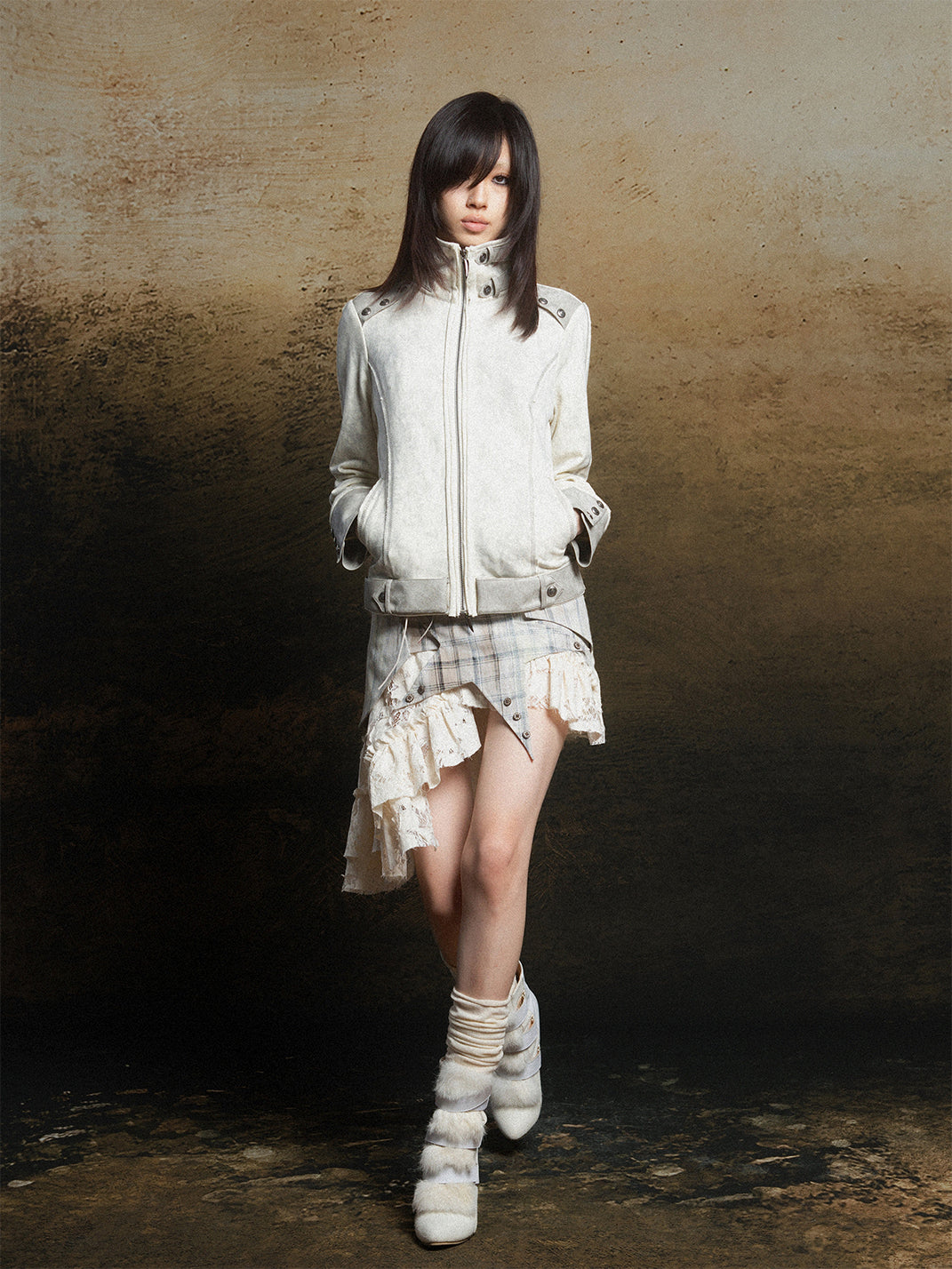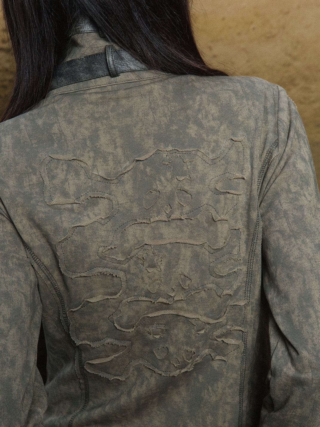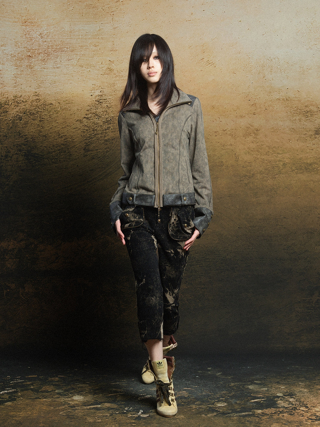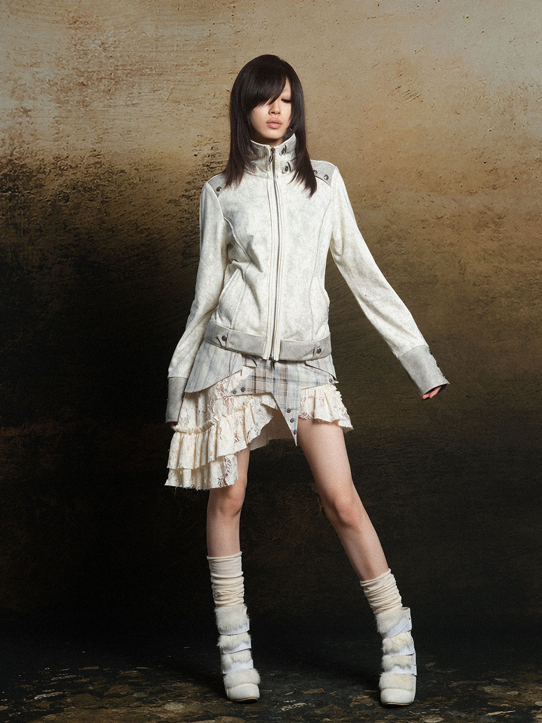 ARIADNAw | Hollow-Out Patchwork PU Jacket Skip to content