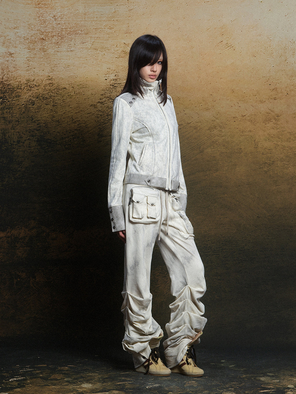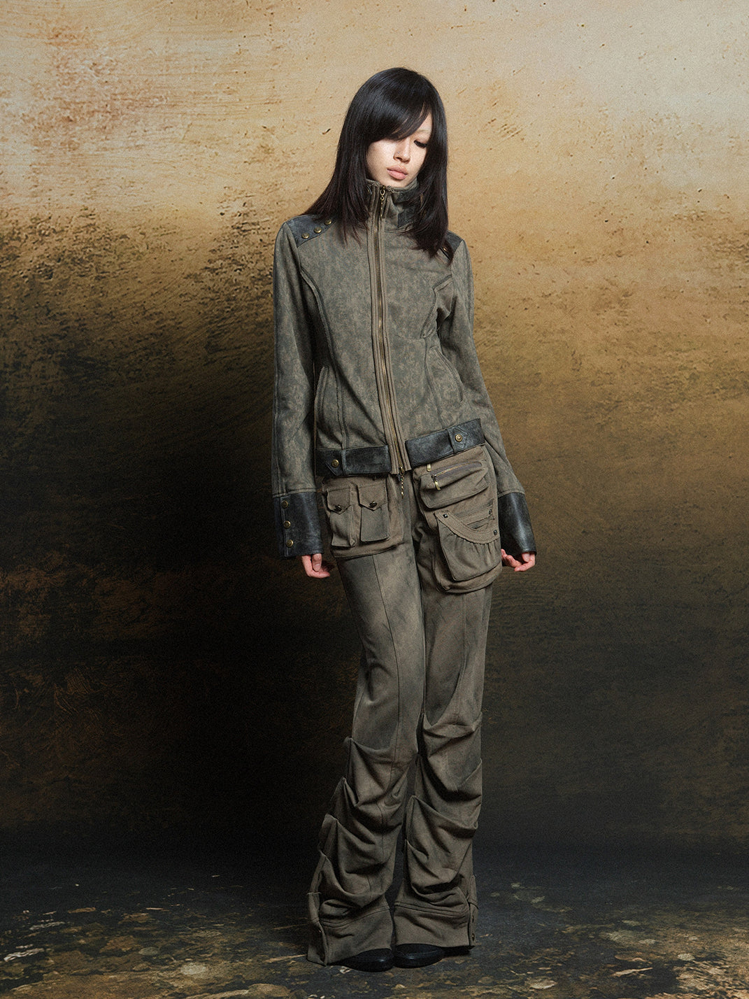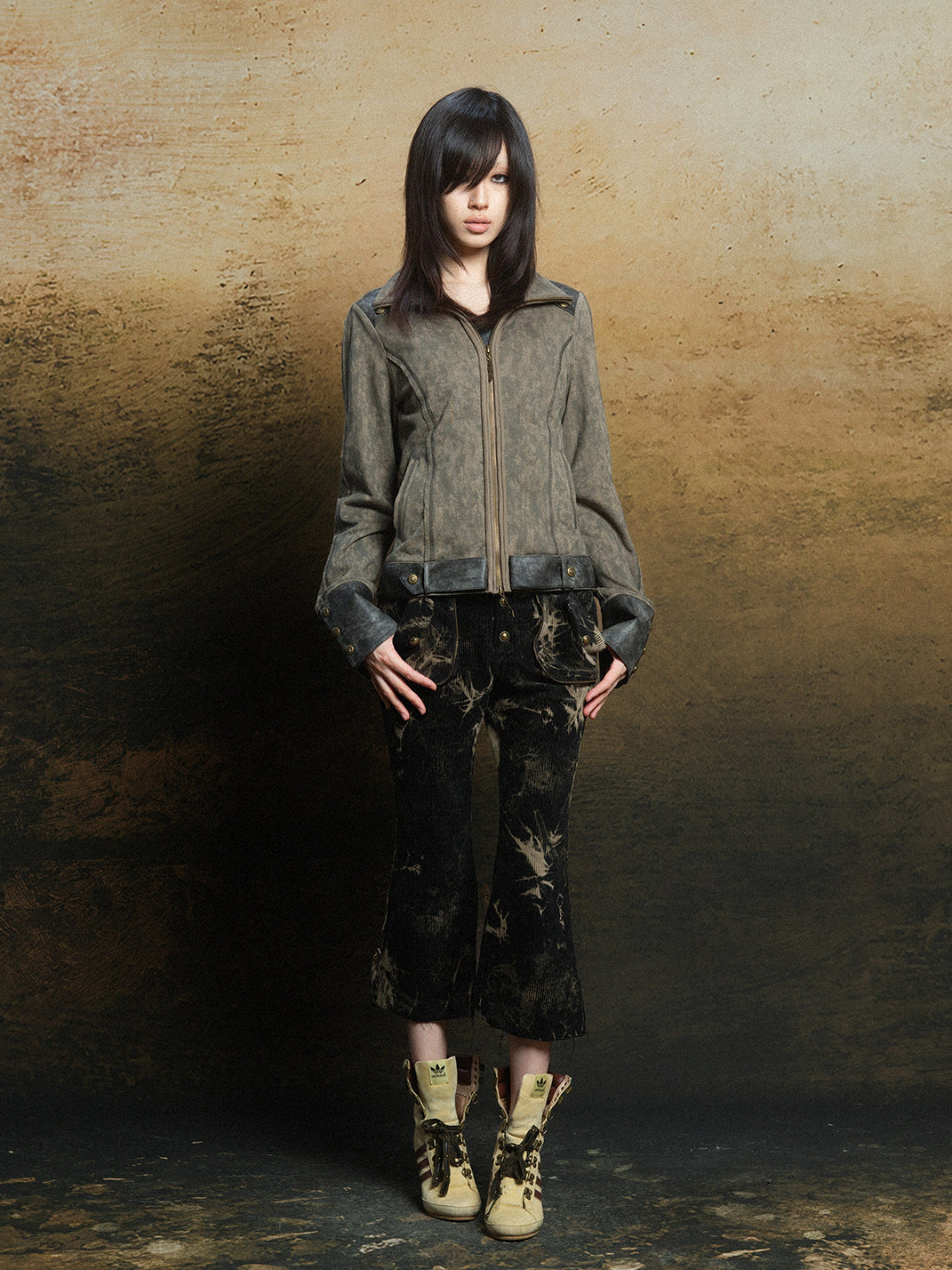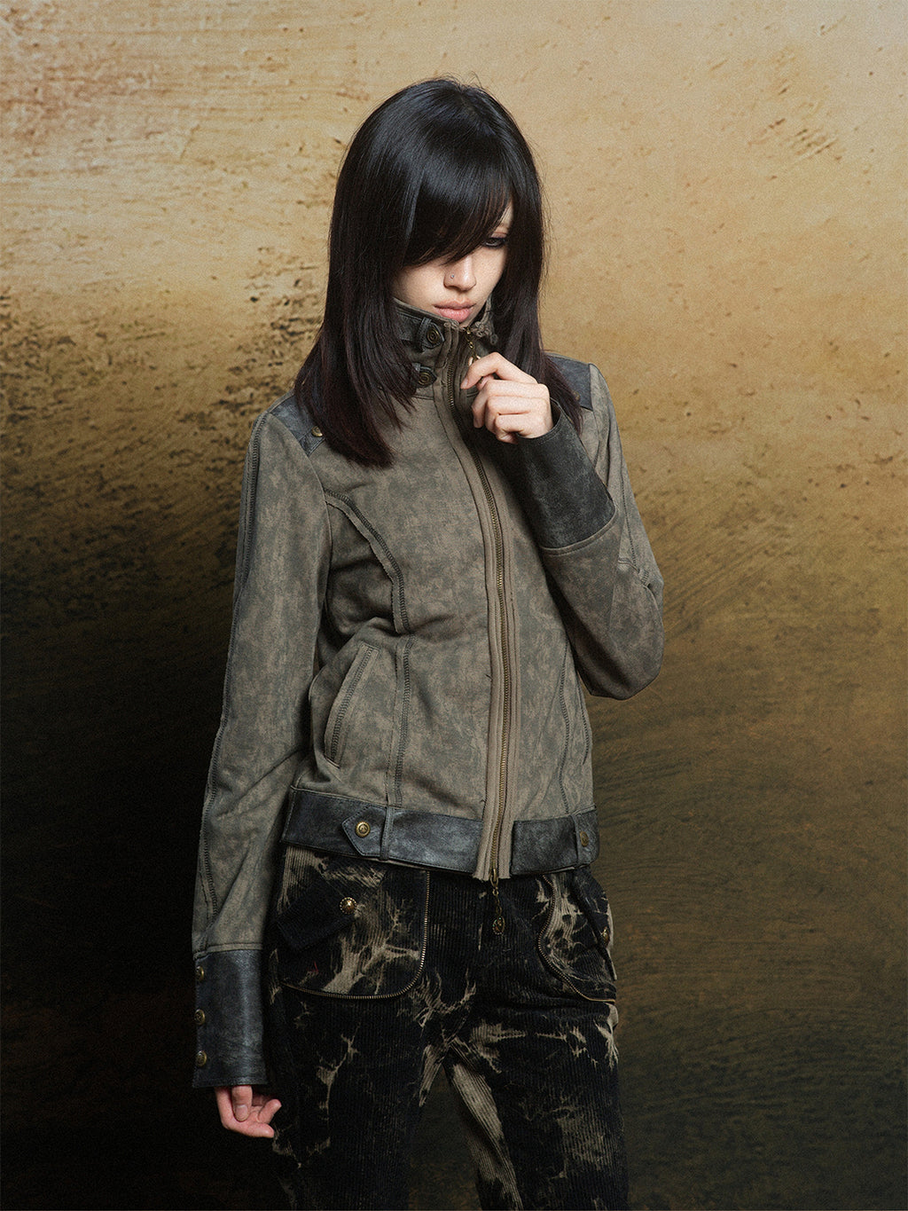 ARIADNAw | Hollow-Out Patchwork PU Jacket Skip to content