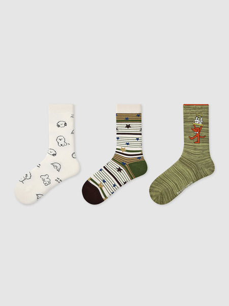 Renaissance丨3-Pack Cartoon Animal Striped Mid-C...