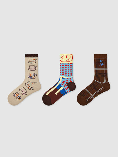 Renaissance丨Plaid Floral Mid-Calf Socks (3 Packs)