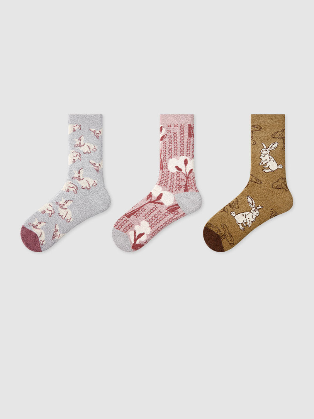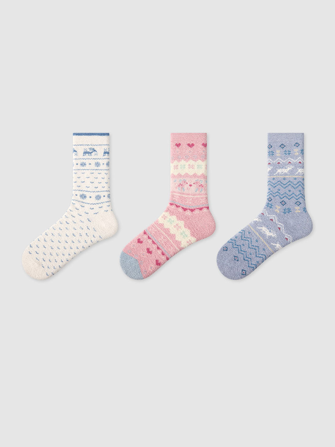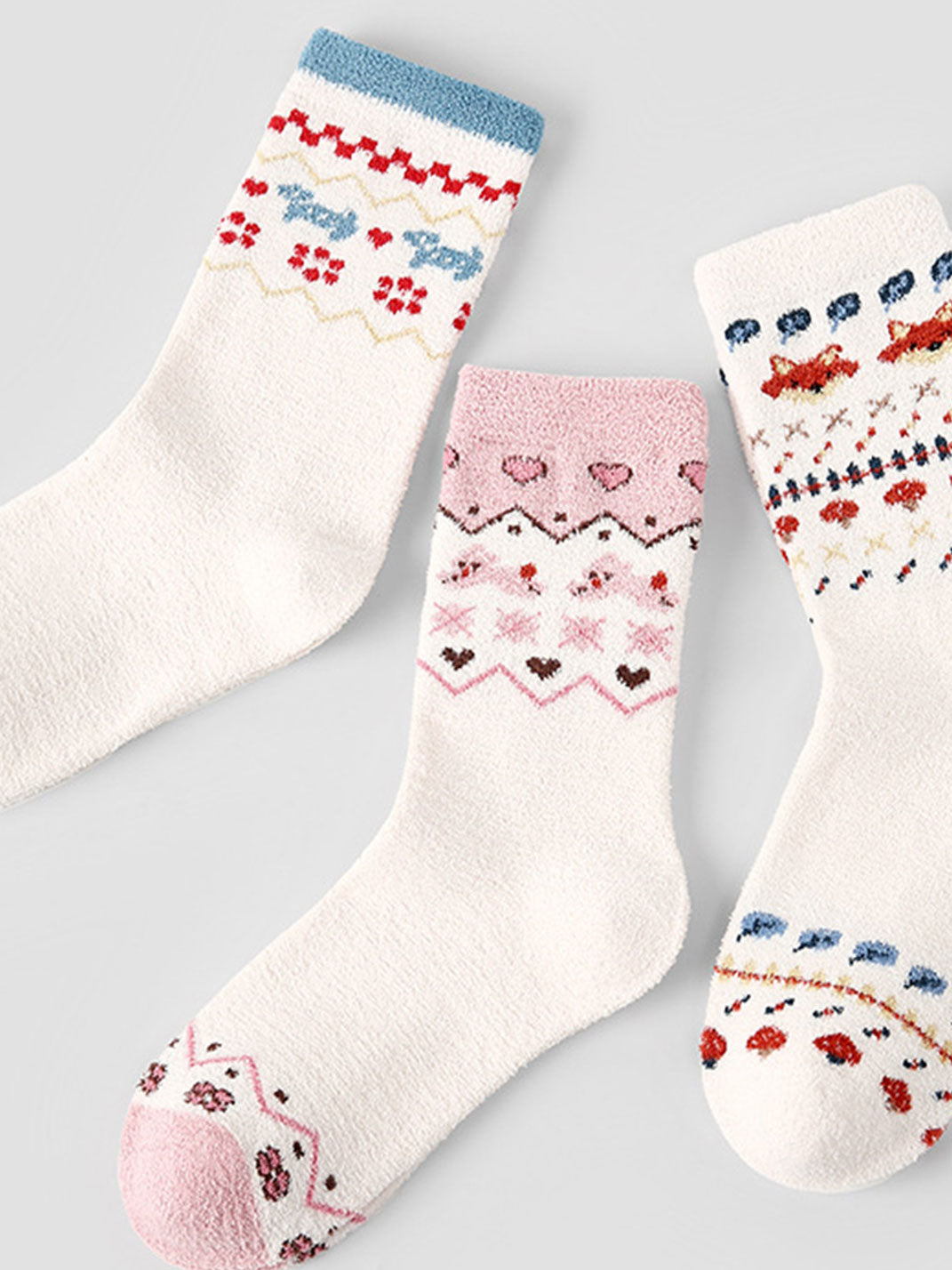 Renaissance丨3-Pack Cute Coral Fleece Mid-Calf Socks for Women