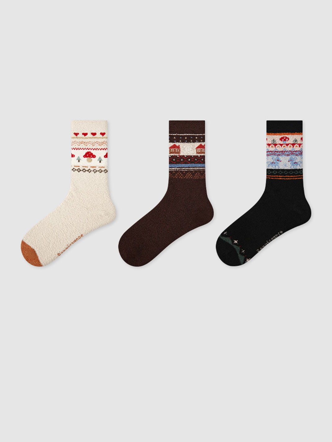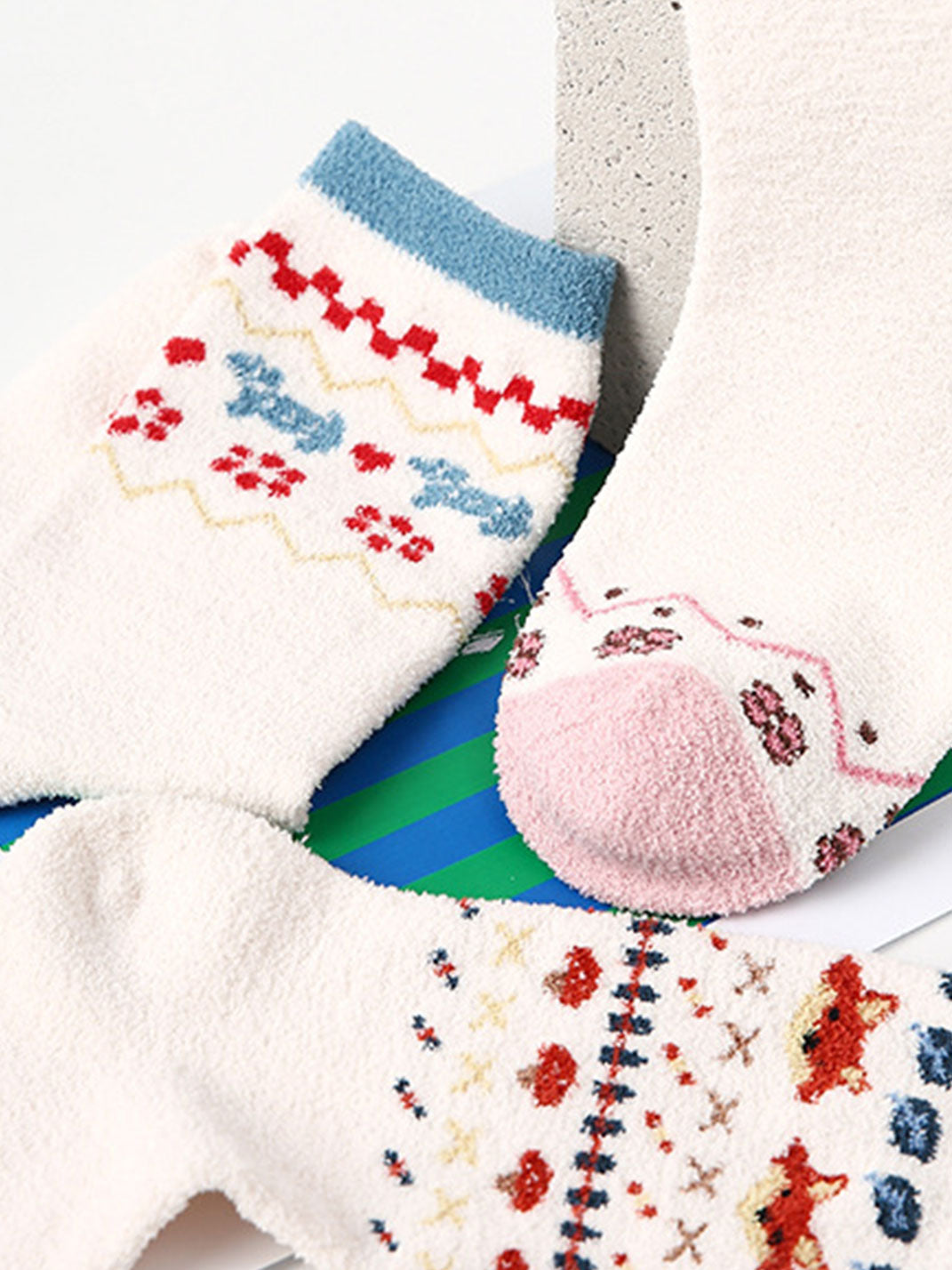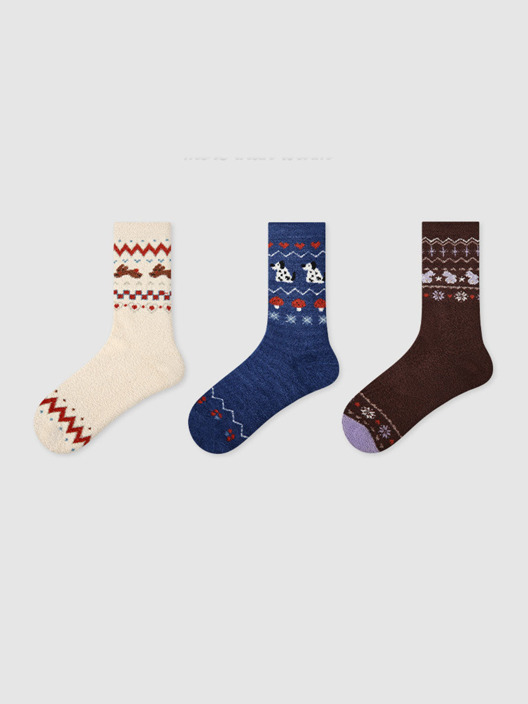Renaissance丨3-Pack Cute Coral Fleece Mid-Calf Socks for Women