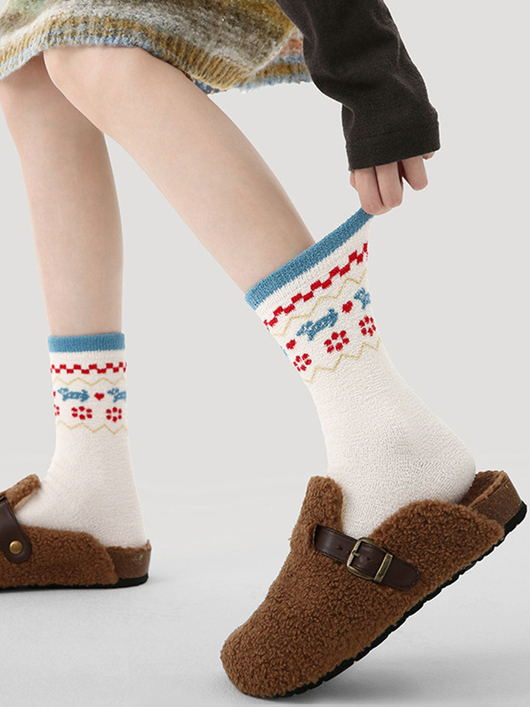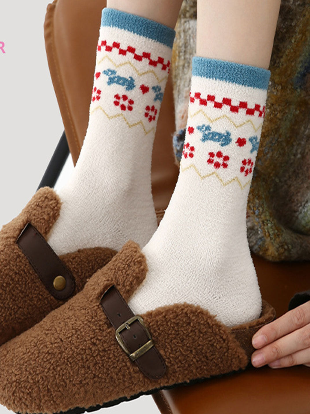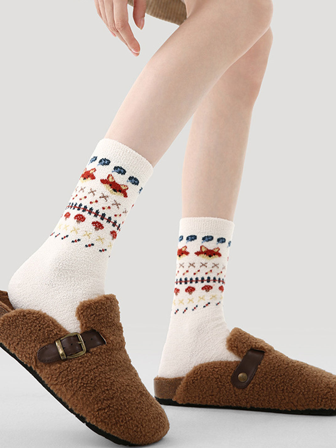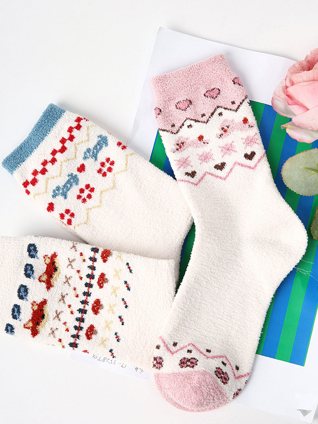 Renaissance丨3-Pack Cute Coral Fleece Mid-Calf Socks for Women Skip to content