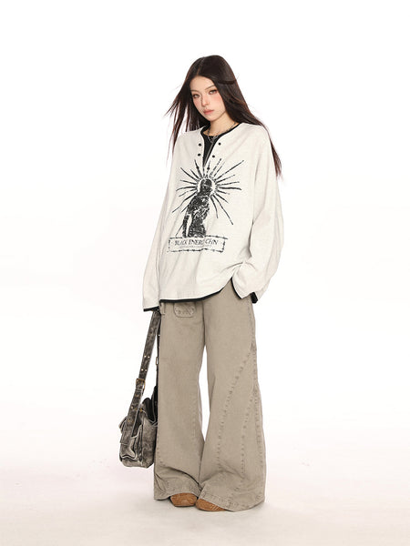 BIGGOLD | Graffiti Print Faux Two-Piece Long Sl...
