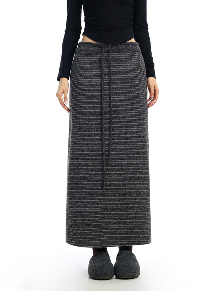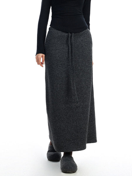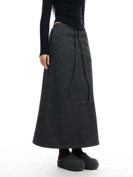 BIGGOLD | Drawstring Straight Wool Midi Skirt