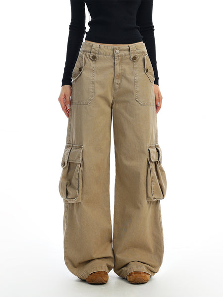 BIGGOLD | Utility Pockets Wide-Leg Cargo Pants