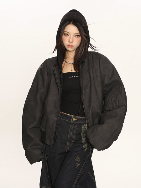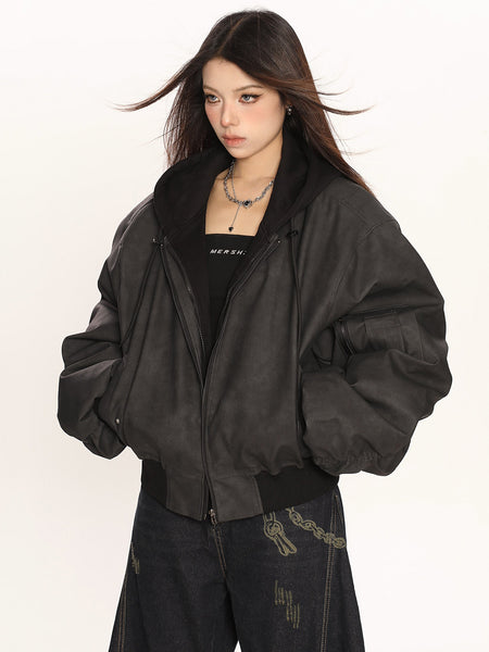 BIGGOLD | Heavyweight Faux Two-Piece Hooded Lea...