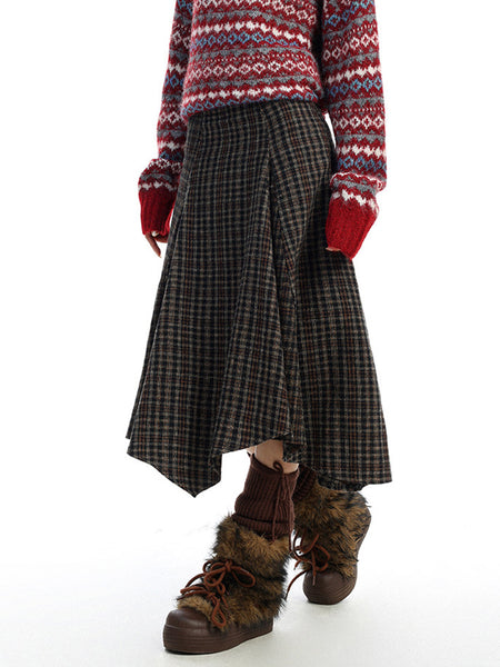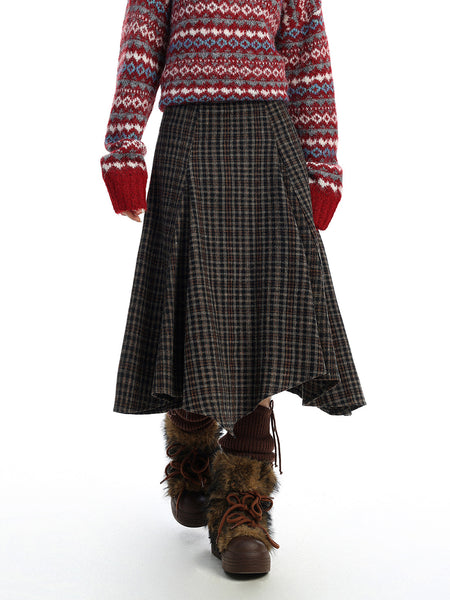 BIGGOLD | Irregular Houndstooth Midi Skirt